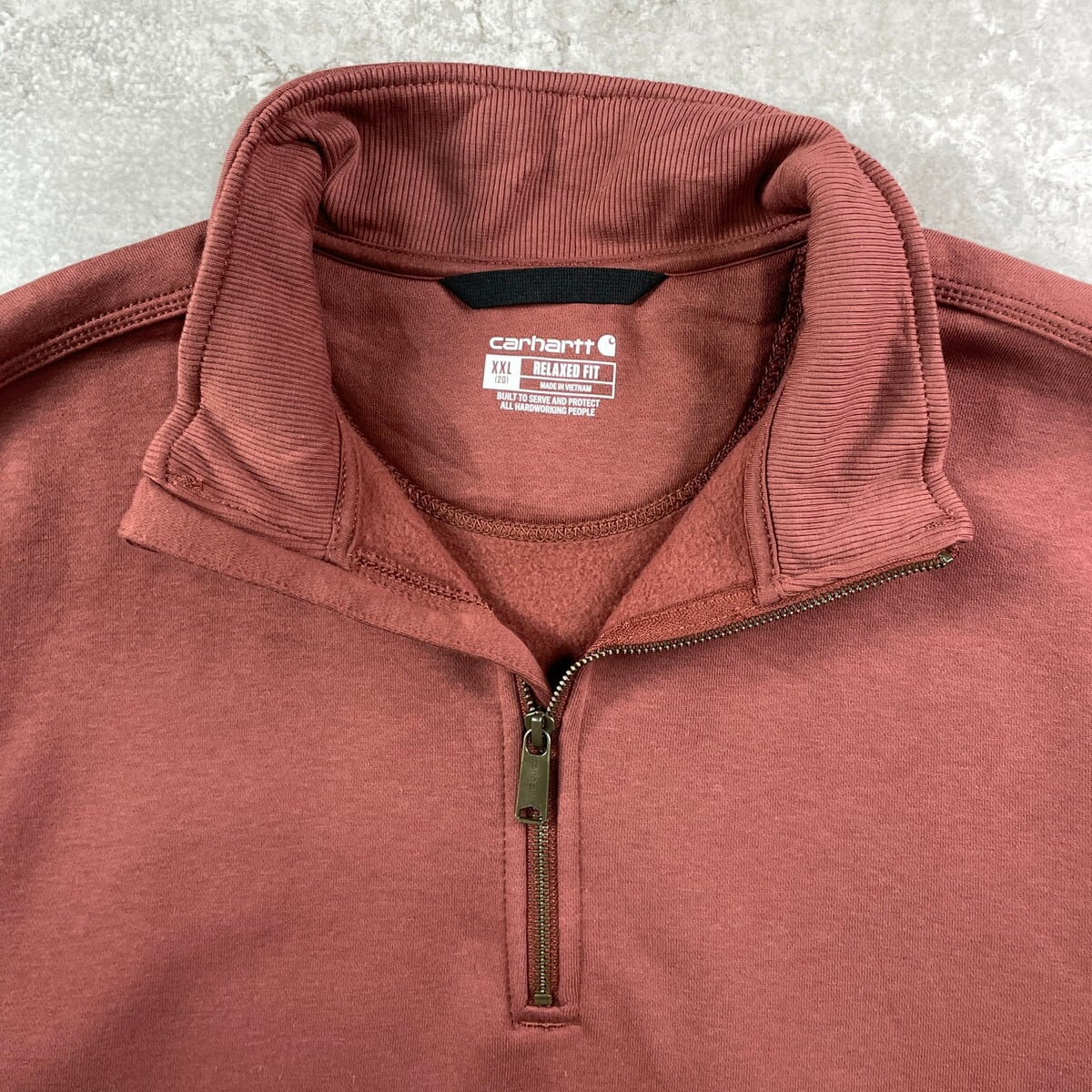 Carhartt カーハート ハーフジップ ワンポイントロゴ刺繍 メンズXL相当 古着 RELAXED FIT ハイネック 緋色【スウェット】/レッド