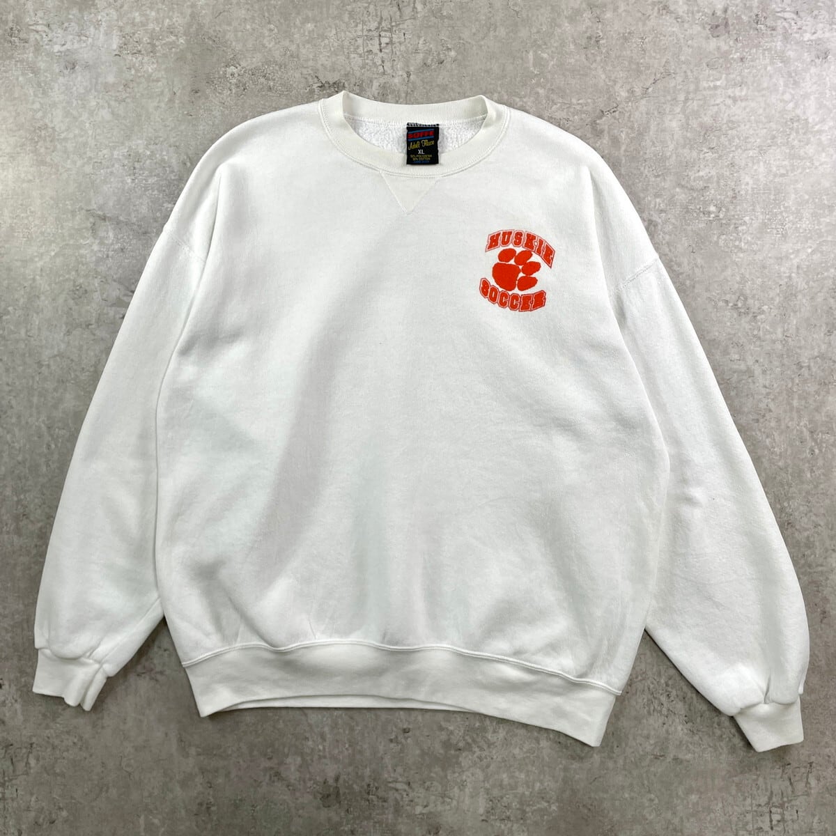80~90年代 USA製 HUSKIE SOCCER ワンポイントロゴプリント スウェットシャツ メンズXL 古着 80s 90s ヴィンテージ VINTAGE USAF アメカジ トレーナー 前Vガゼット 裏起毛 白色【スウェット】/ホワイト