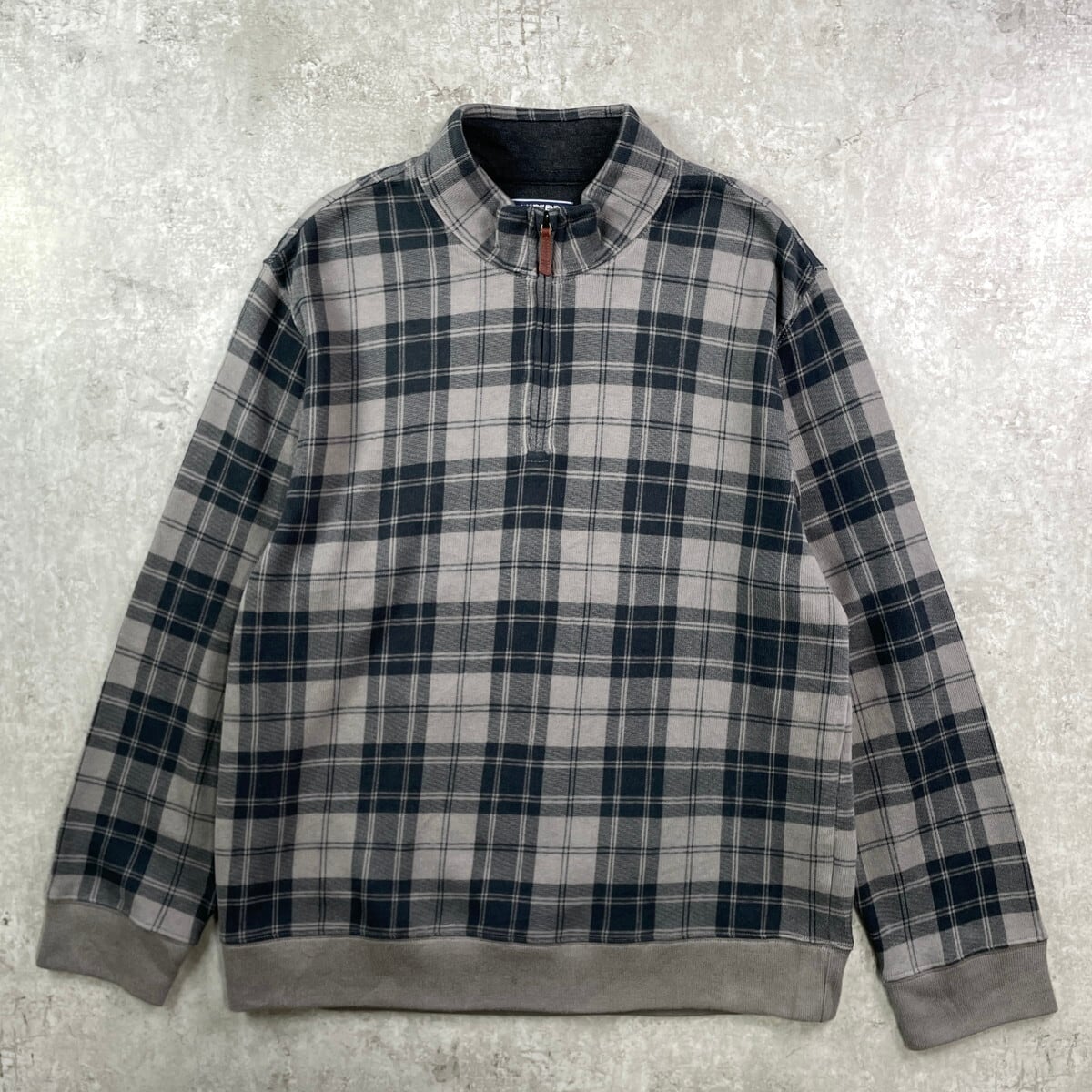LANDS' END ランズエンド タータンチェック ハーフジップ コットンニット メンズL 古着 プルオーバー ブラック グレー【スウェット】/マルチカラー