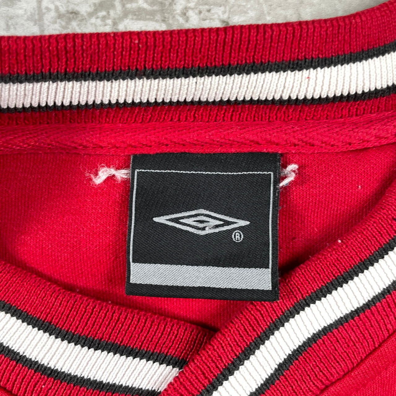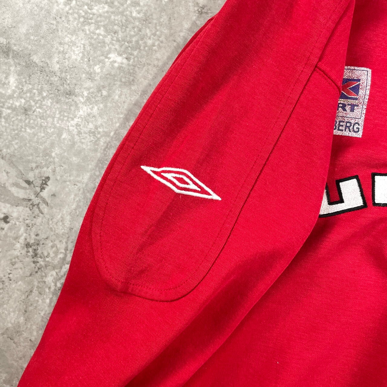 ■00年代 UMBRO アンブロ ビッグロゴ刺繍 スウェットシャツ メンズM 古着 00s ヴィンテージ VINTAGE 袖ロゴ刺繡 トレーナー 赤【スウェット】/レッド