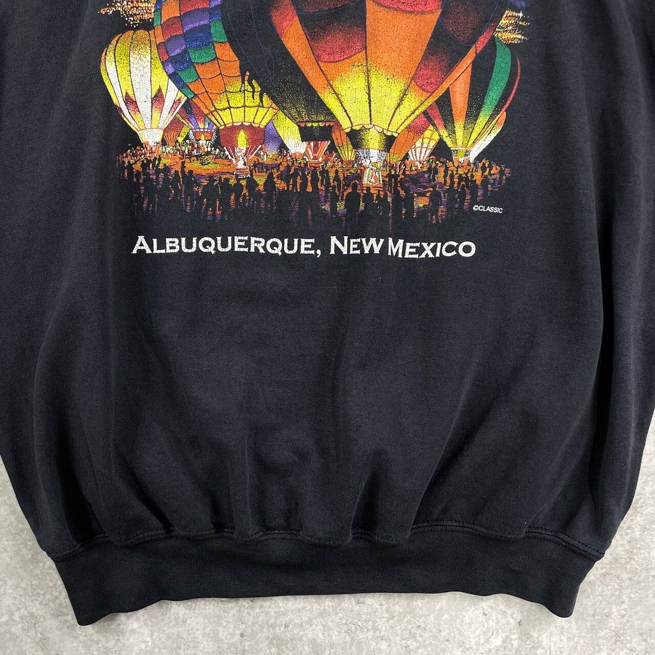 90年代 ALBUQUERQUE NEW MEXICO 気球 アートプリント スウェットシャツ メンズL 古着 90s VINTAGE ヴィンテージ トレーナー アメカジ 袖プリ スーベニア メキシコ アルバカーキ 黒 【スウェット】/ブラック