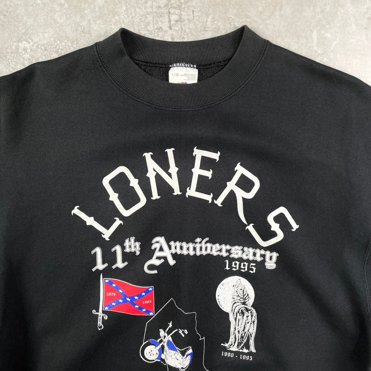 ■90年代 LONERS アニバーサリープリント スウェットシャツ メンズL 古着 90s ヴィンテージ VINTAGE トレーナー オオカミ 黒色【スウェット】/ブラック