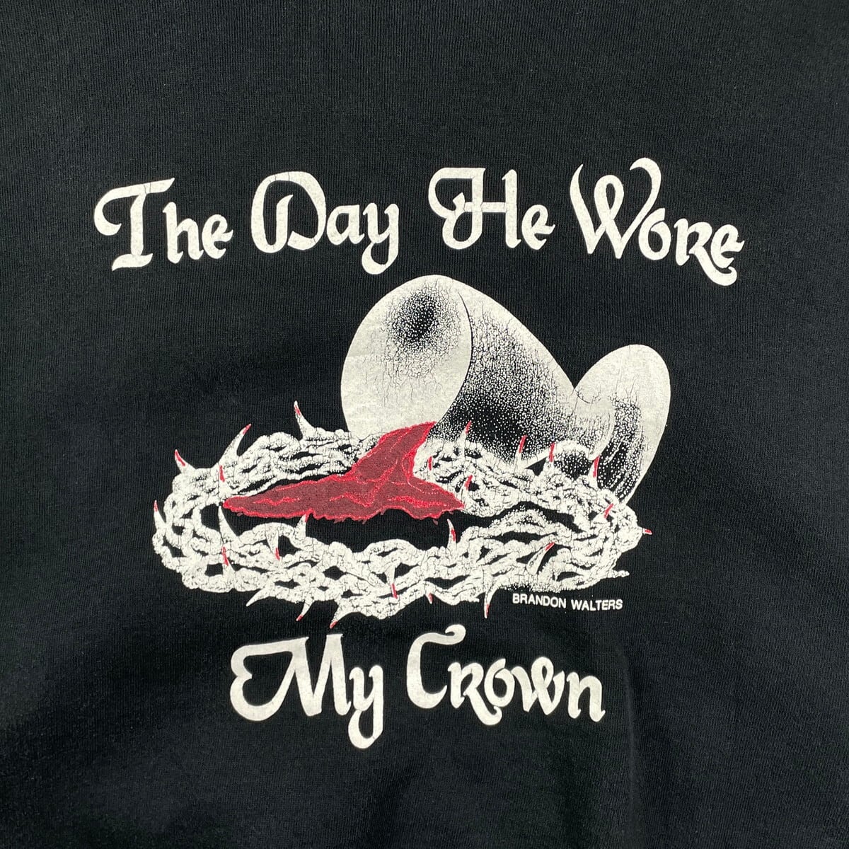 90年代 USA製 JERZEEZ メッセージプリント スウェットシャツ メンズXL 古着 90s ヴィンテージ VINTAGE トレーナー 新約聖書 有刺鉄線 黒色【スウェット】/ブラック