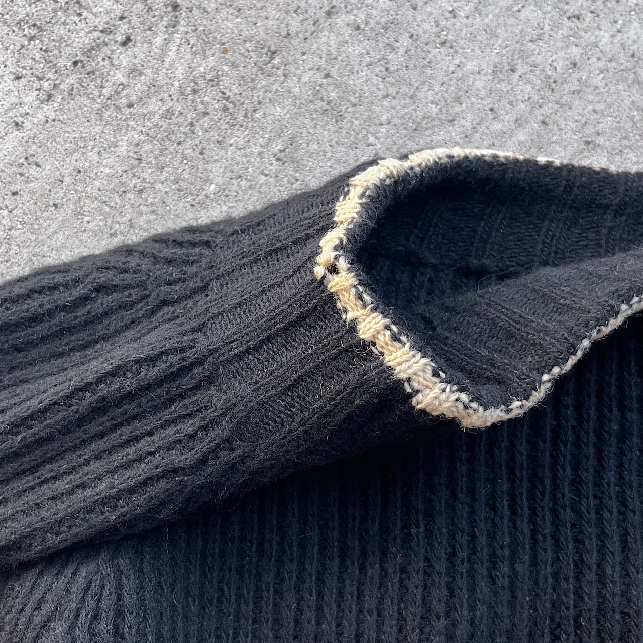 ■UNKNOWN 総柄ニットセーター ボートネック メンズL相当 古着 ブラック アイボリー オフホワイト 黒 生成り 【ニットセーター】/マルチカラー