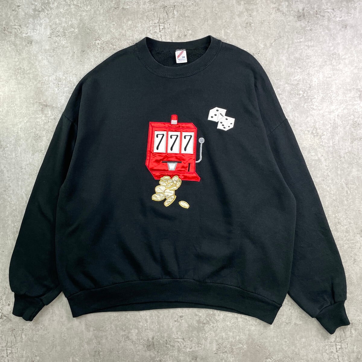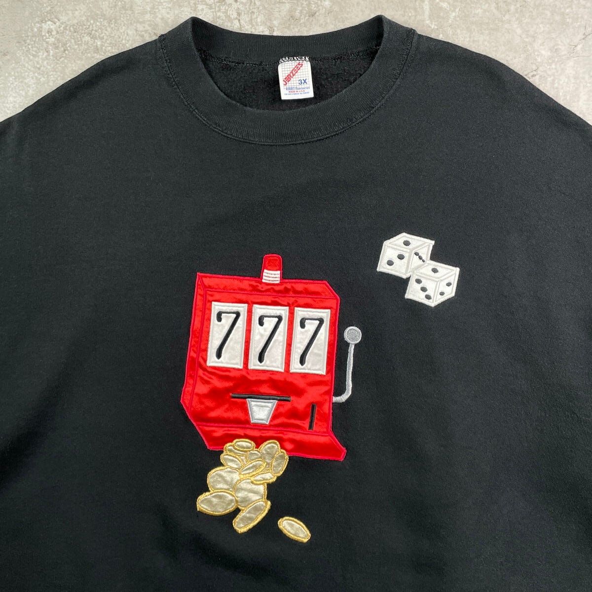 90年代 USA製 スロット サイコロ デザイン刺繍 スウェットシャツ メンズ3XL 古着 90s ヴィンテージ VINTAGE カジノ ギャンブル ビッグサイズ 大きいサイズ 黒色【スウェット】/ブラック