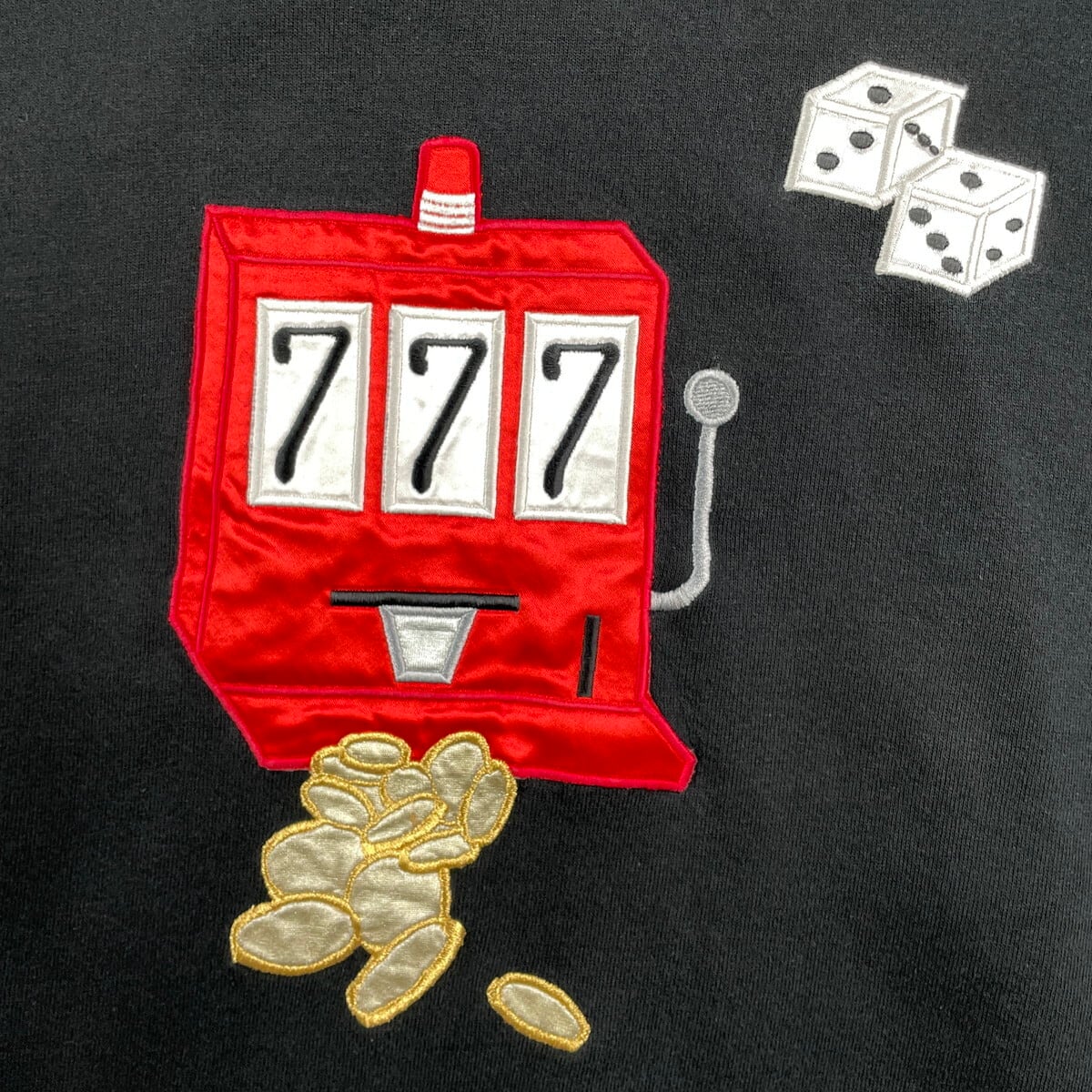 ■90年代 USA製 スロット サイコロ デザイン刺繍 スウェットシャツ メンズ3XL 古着 90s ヴィンテージ VINTAGE カジノ ギャンブル ビッグサイズ 大きいサイズ 黒色【スウェット】/ブラック