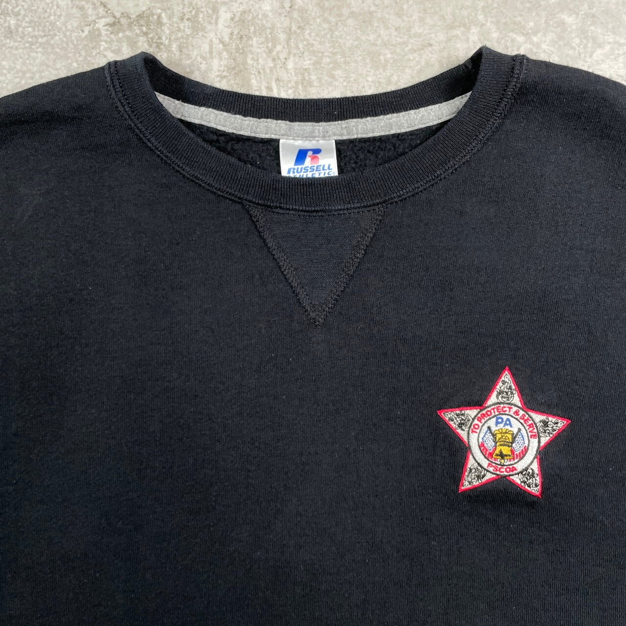 ■00年代 RUSSELL ATHLETIC ラッセル PSCOA 企業ロゴ刺繍 リバースタイプ スウェットシャツ メンズL 古着 00s ヴィンテージ VINTAGE 前Vガゼット アメカジ トレーナー ペンシルベニア州保安官協会 黒【スウェット】/ブラック