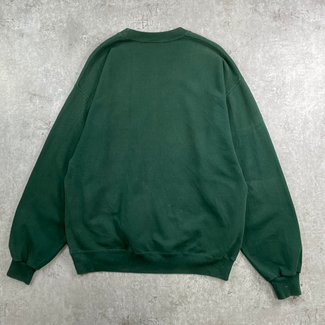 90年代 USA製 SANKEN 企業ロゴ刺繍 鹿の子 スウェットシャツ メンズL 古着 90s VINTAGE ヴィンテージ ワンポイント 緑【スウェット】/グリーン