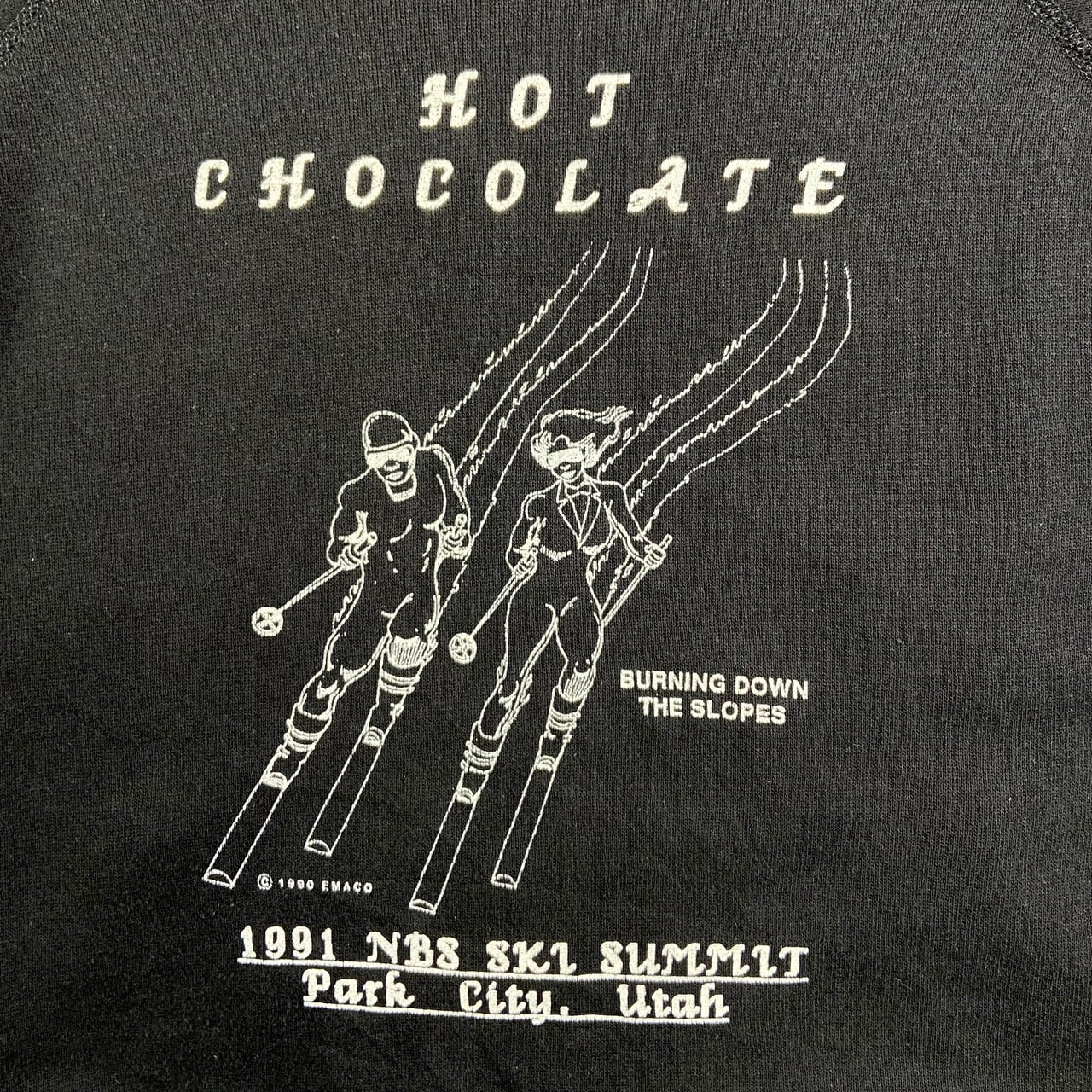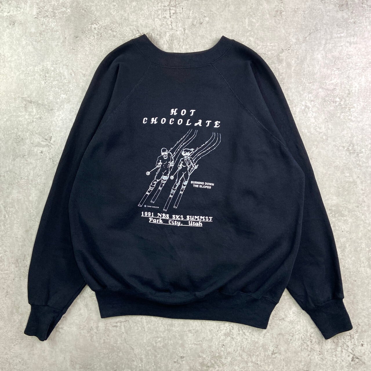 90年代 USA製 HOT CHOCOLATE プリント ラグラン スウェットシャツ メンズL 古着 90s VINTAGE ヴィンテージ イベント スキー 黒【スウェット】/ブラック