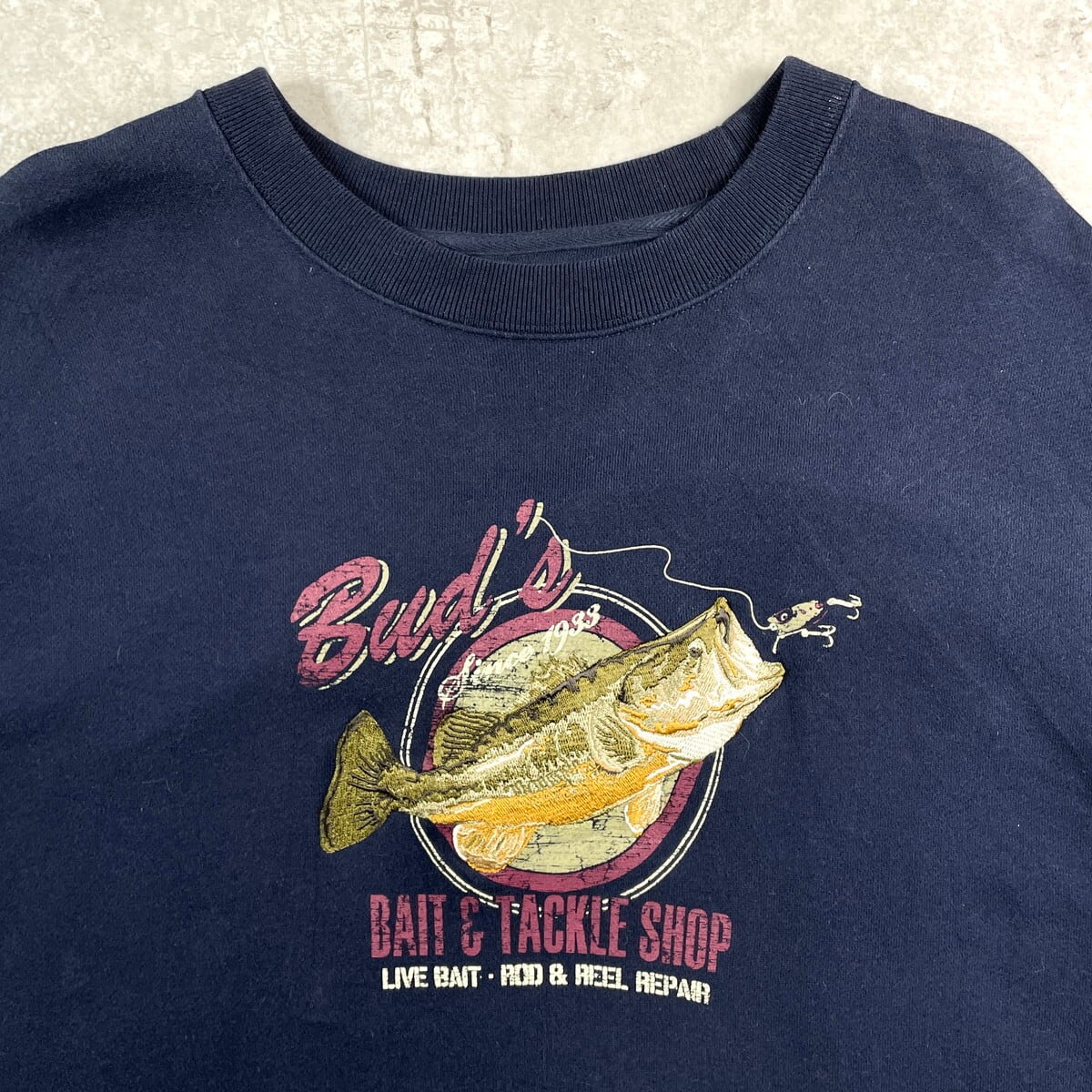 croft&barrow ブラックバス デザイン刺繍 スウェットシャツ メンズXL 古着 魚 アニマル トレーナー 紺色【スウェット】/ネイビー