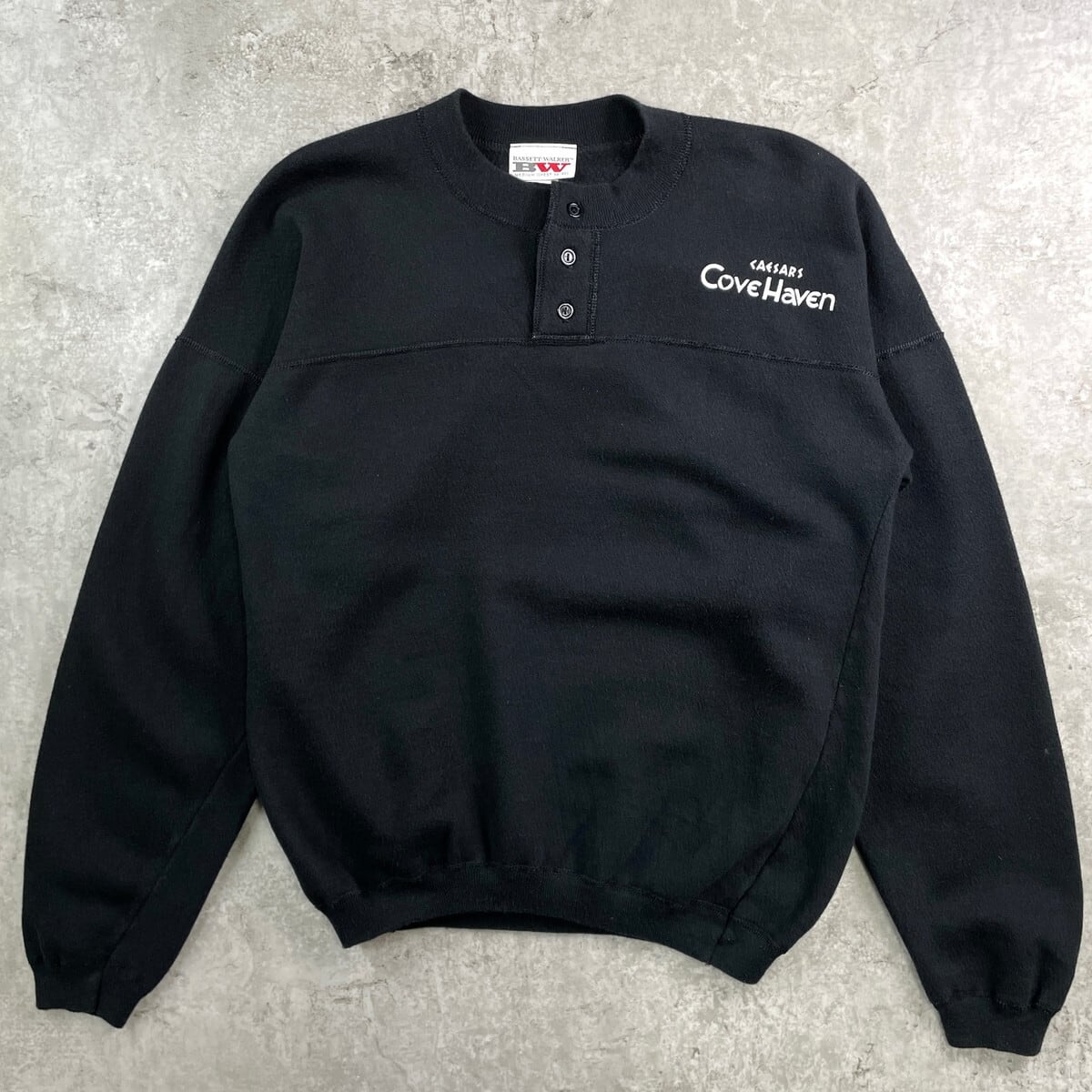 80年代 USA製 BASSETT-WALKER ヘンリーネック スウェットシャツ メンズM 古着 80s ヴィンテージ VINTAGE アメカジ ワンポイントロゴプリント 黒色【スウェット】/ブラック