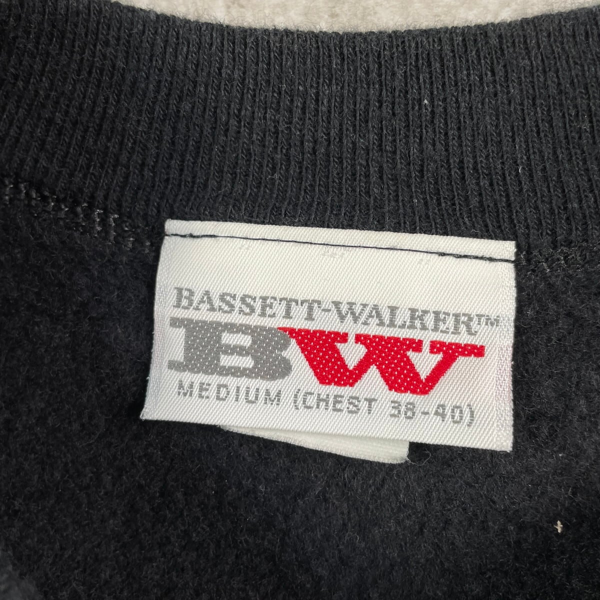■80年代 USA製 BASSETT-WALKER ヘンリーネック スウェットシャツ メンズM 古着 80s ヴィンテージ VINTAGE アメカジ ワンポイントロゴプリント 黒色【スウェット】/ブラック