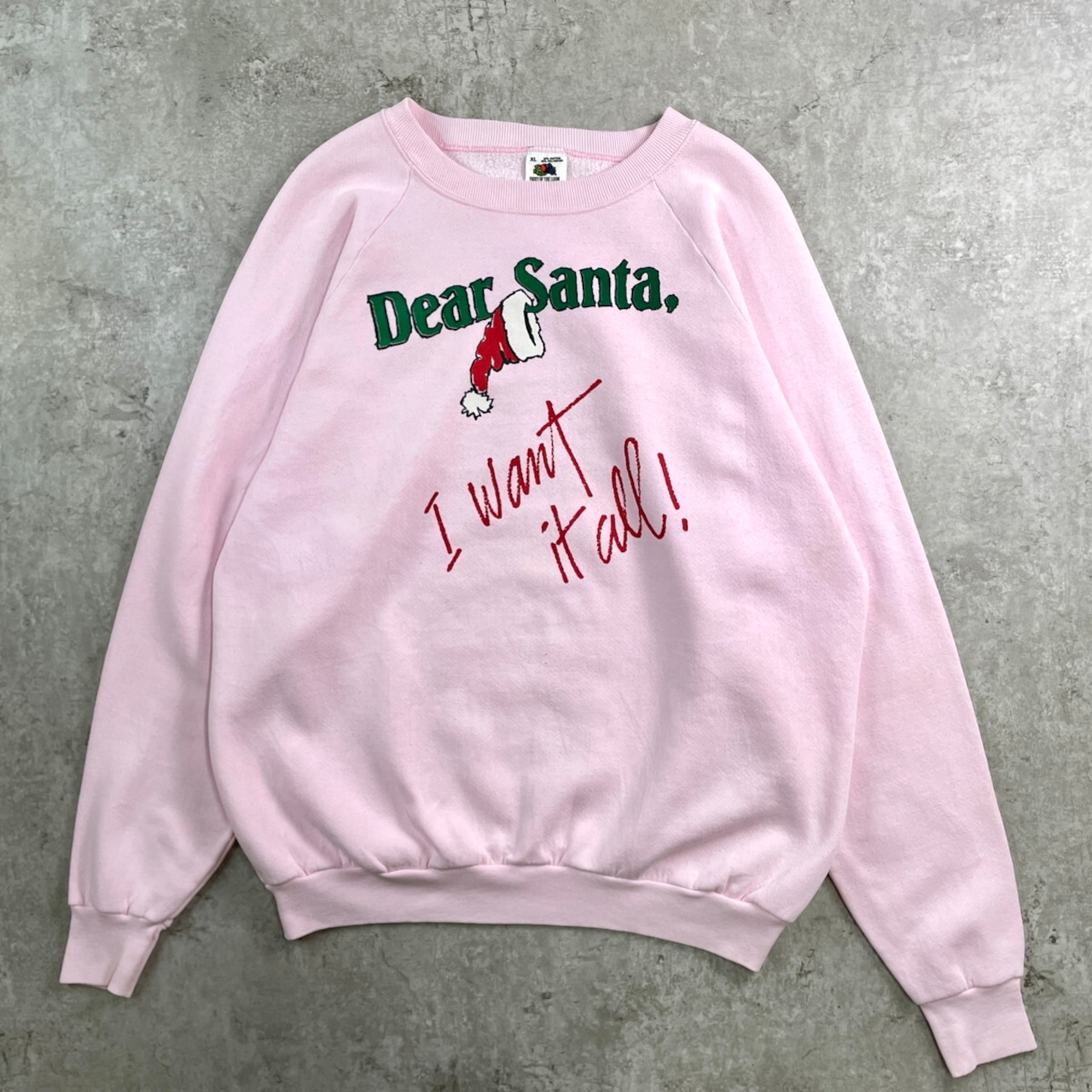 ■90年代 USA製 Dear Santa サンタ クリスマス メッセージプリント スウェットシャツ メンズL相当 古着 90s ヴィンテージ VINTAGE ラグランスリーブ トレーナー 薄ピンク【スウェット】/ピンク