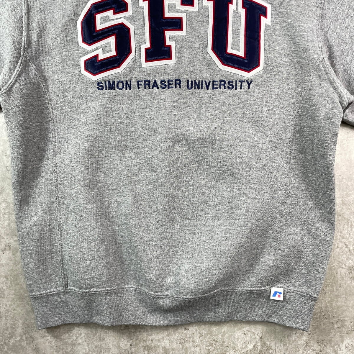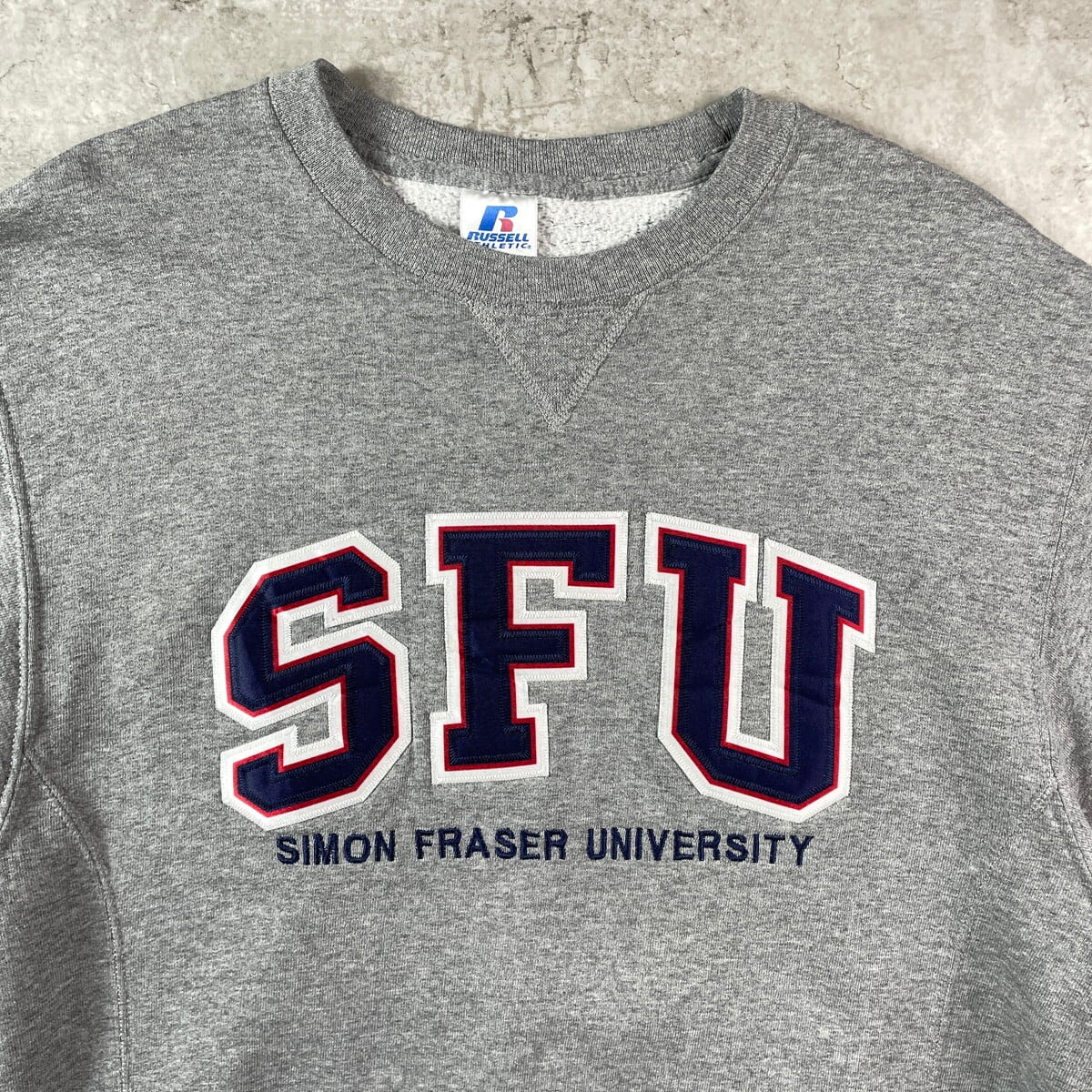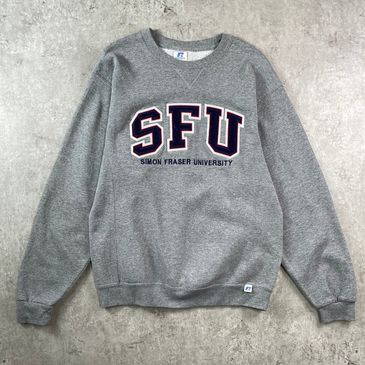 ■00年代 RUSSELL ATHLETIC ラッセル SFU カレッジ刺繍 リバースタイプ スウェットシャツ メンズM レディース 古着 00s Y2K ヴィンテージ VINTAGE 前Vガゼット アメカジ トレーナー SIMON FRASER UNIVERSITY 灰色【スウェット】/グレー