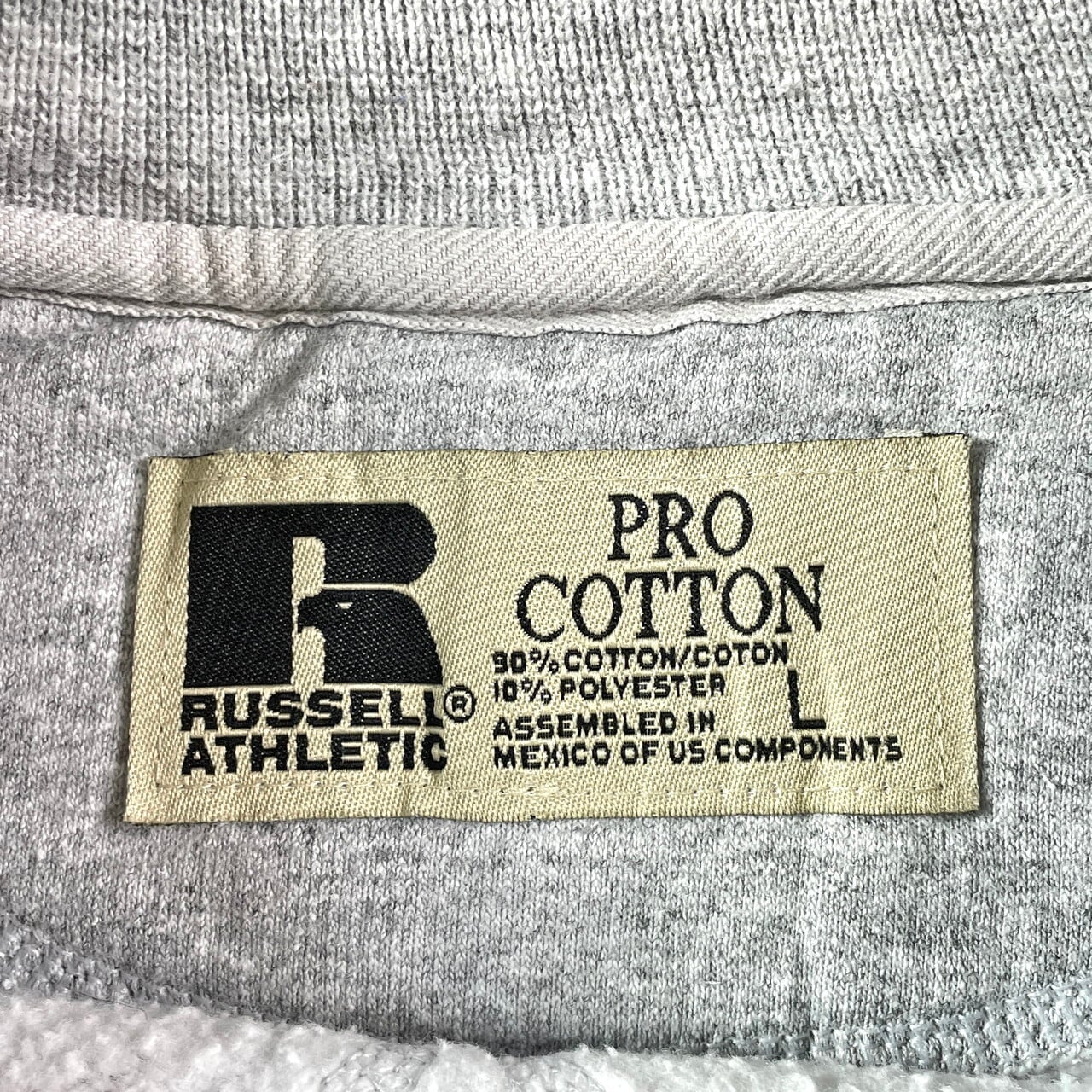 00年代 RUSSELL ATHLETIC ラッセル ORI 企業ロゴプリント スウェットシャツ メンズXL相当 古着 00s Y2K ヴィンテージ VINTAGE 前Vガゼット アメカジ トレーナー ライトグレー【スウェット】/グレー
