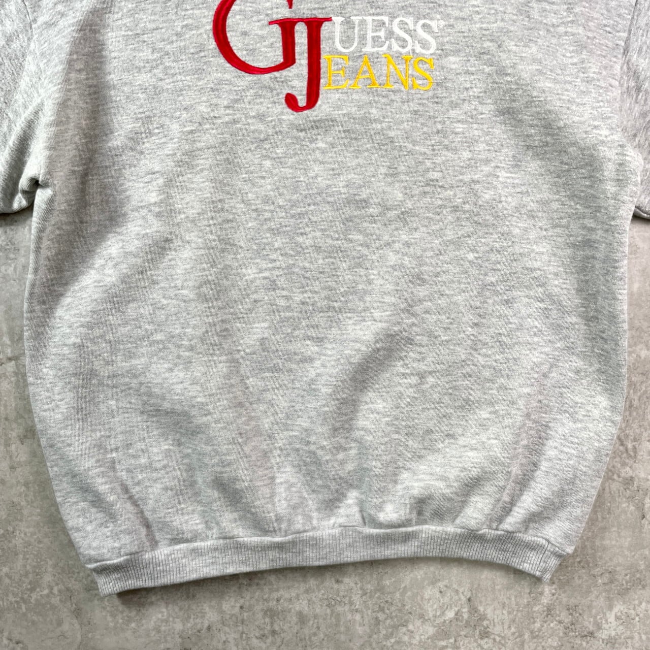 90年代 USA製 GUESS ゲス ビッグロゴ刺繍 スウェットシャツ メンズM相当 古着 90s ヴィンテージ VINTAGE トレーナー【スウェット】/グレー
