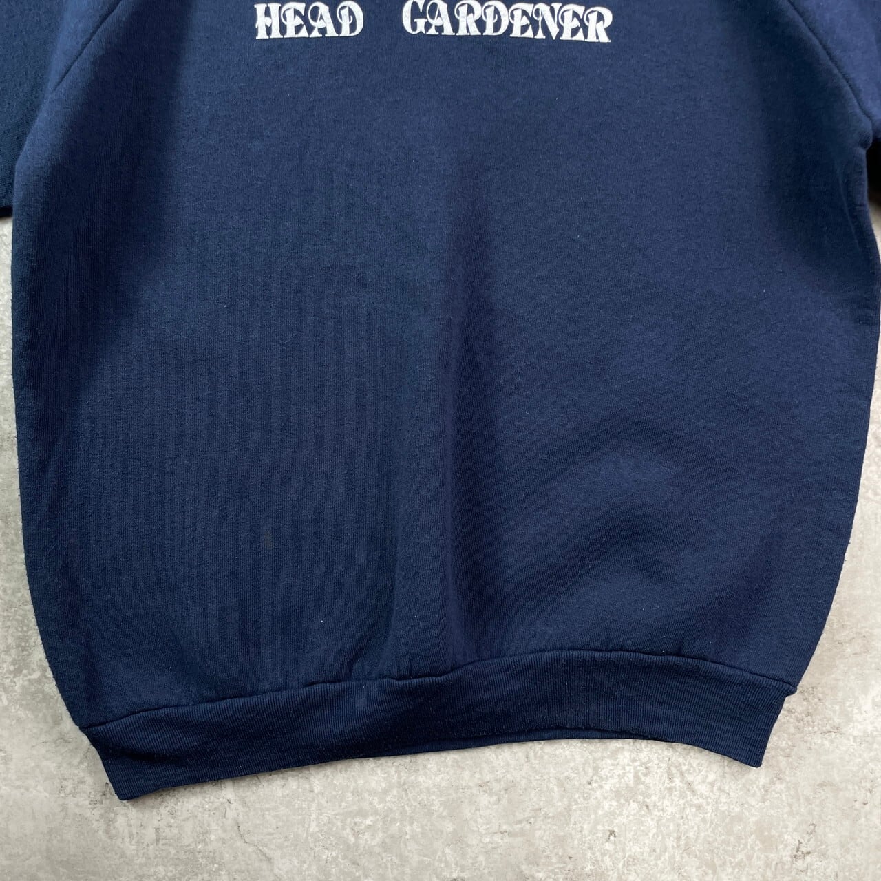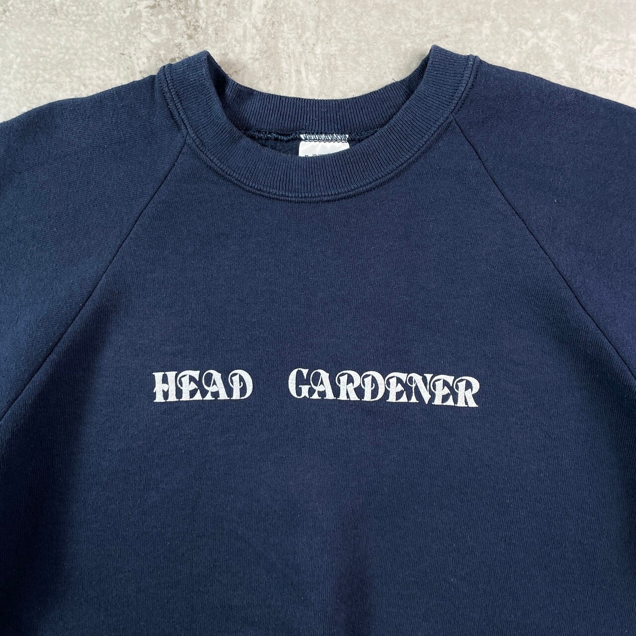 90年代 アイルランド製 HEAD GARDENER 発泡プリント スウェットシャツ メンズM 古着 90s ヴィンテージ VINTAGE トレーナー アメカジ 紺色【スウェット】/ネイビー
