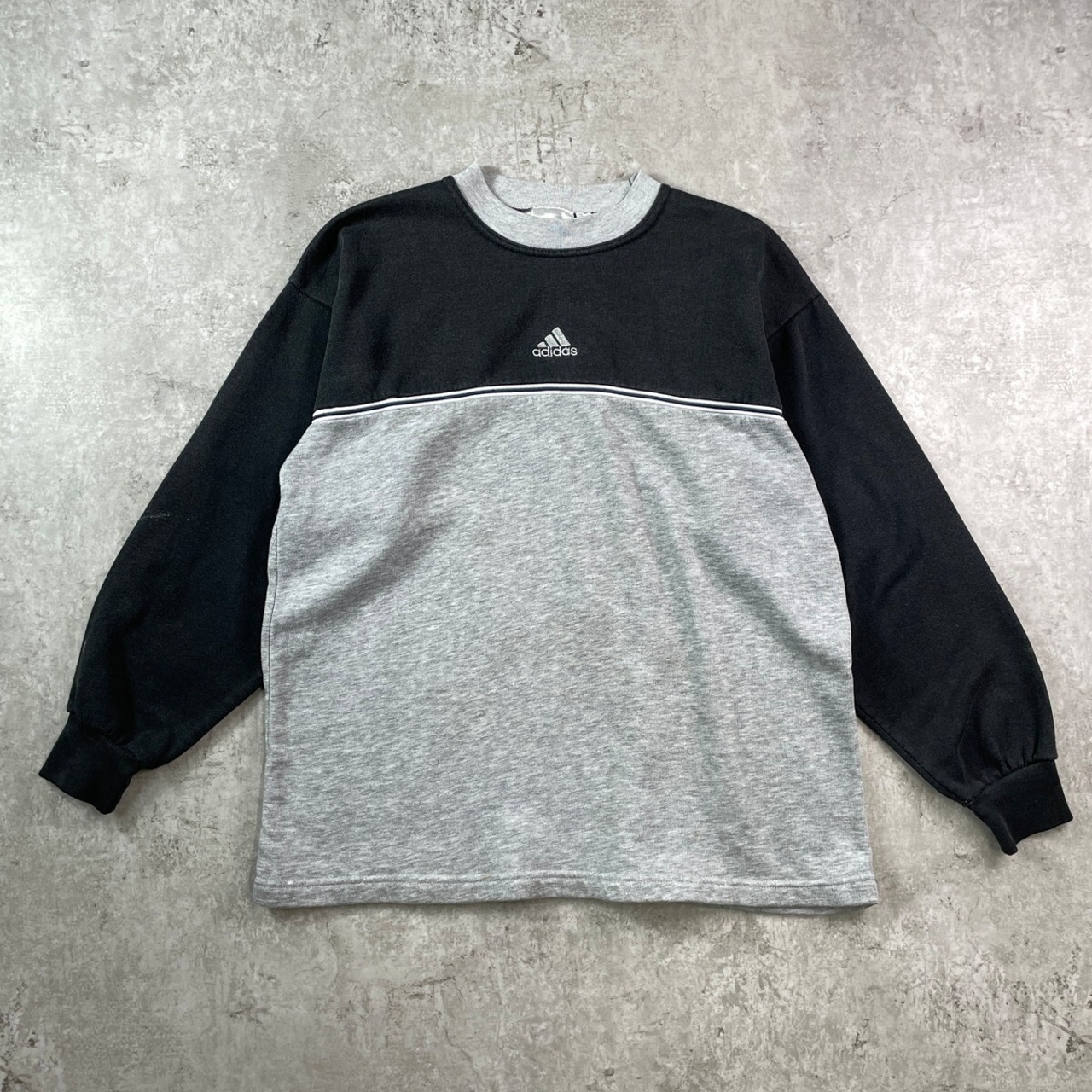 00年代 adidas アディダス ワンポイントロゴ刺繍 スウェットシャツ メンズM 古着 00s Y2K ヴィンテージ VINTAGE 切り替えデザイン フェイクレイヤード ブラック グレー【スウェット】/マルチカラー