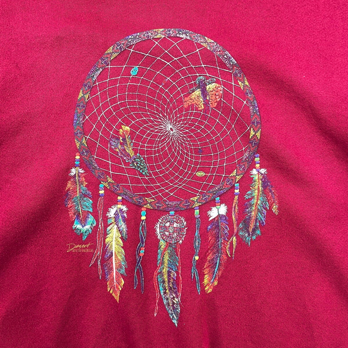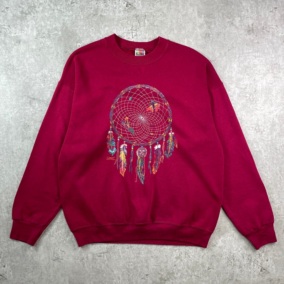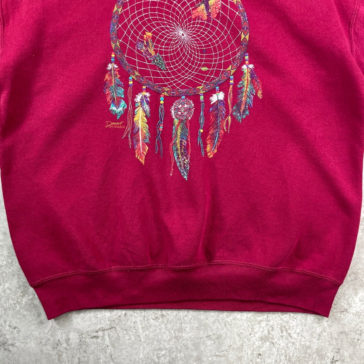 00年代 ドリームキャッチャー グラフィックプリント スウェットシャツ メンズL 古着 00s Y2K ヴィンテージ VINTAGE アメカジ 民族 装飾品 トレーナー ボルドーレッド【スウェット】/ワインレッド