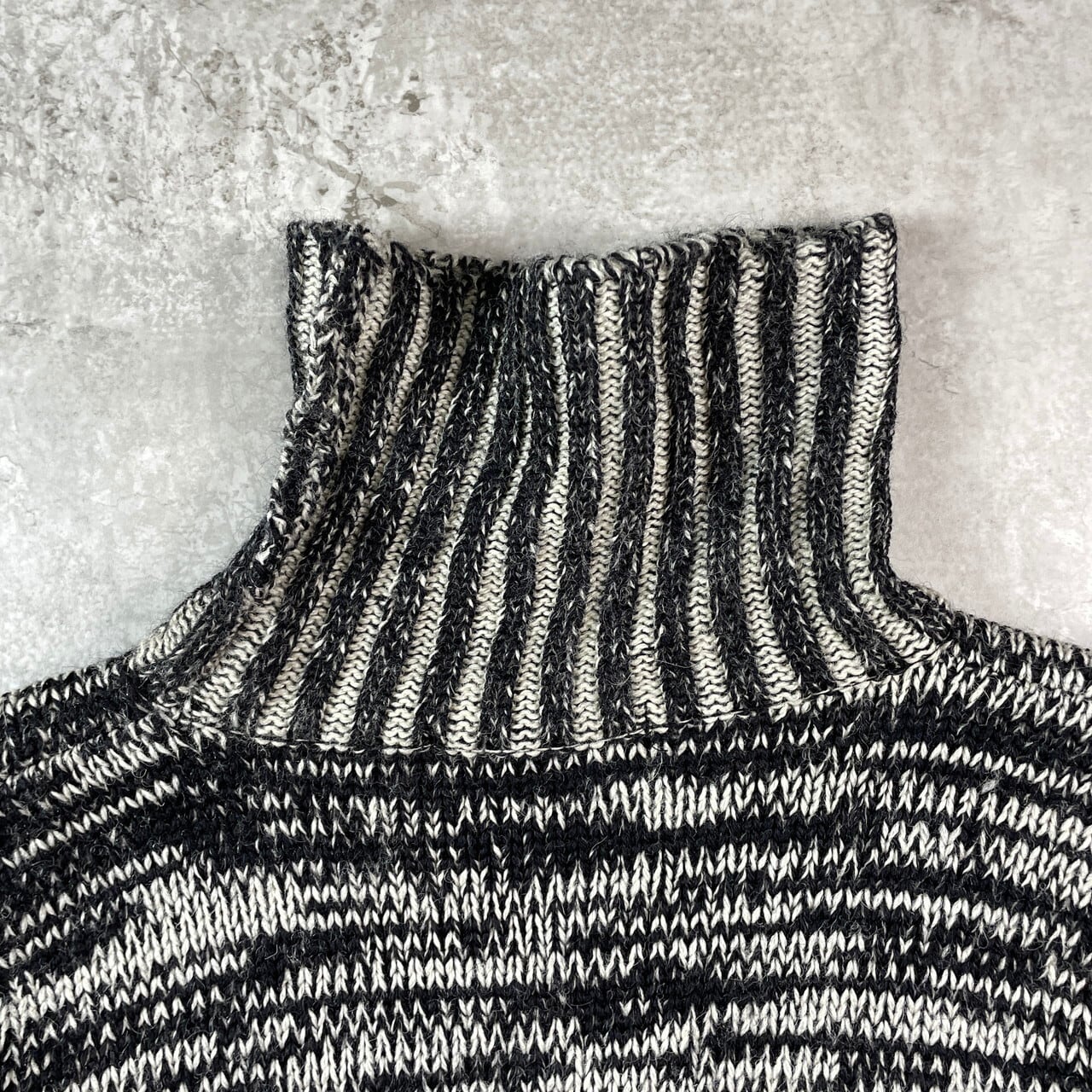 ■90年代 英国製 JOSEPH TRICOT タートルネック ウールニットセーター メンズL相当 古着 デザインニット ハイネック ブラック ホワイト 黒 白【ニットセーター】/マルチカラー