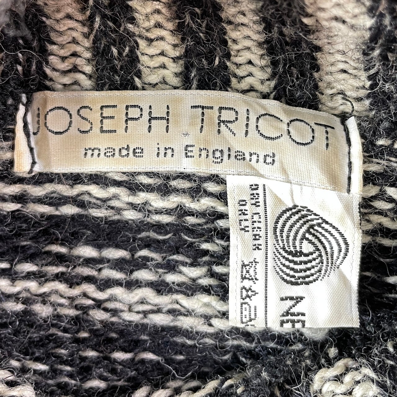 90年代 英国製 JOSEPH TRICOT タートルネック ウールニットセーター メンズL相当 古着 デザインニット ハイネック ブラック ホワイト 黒 白【ニットセーター】/マルチカラー
