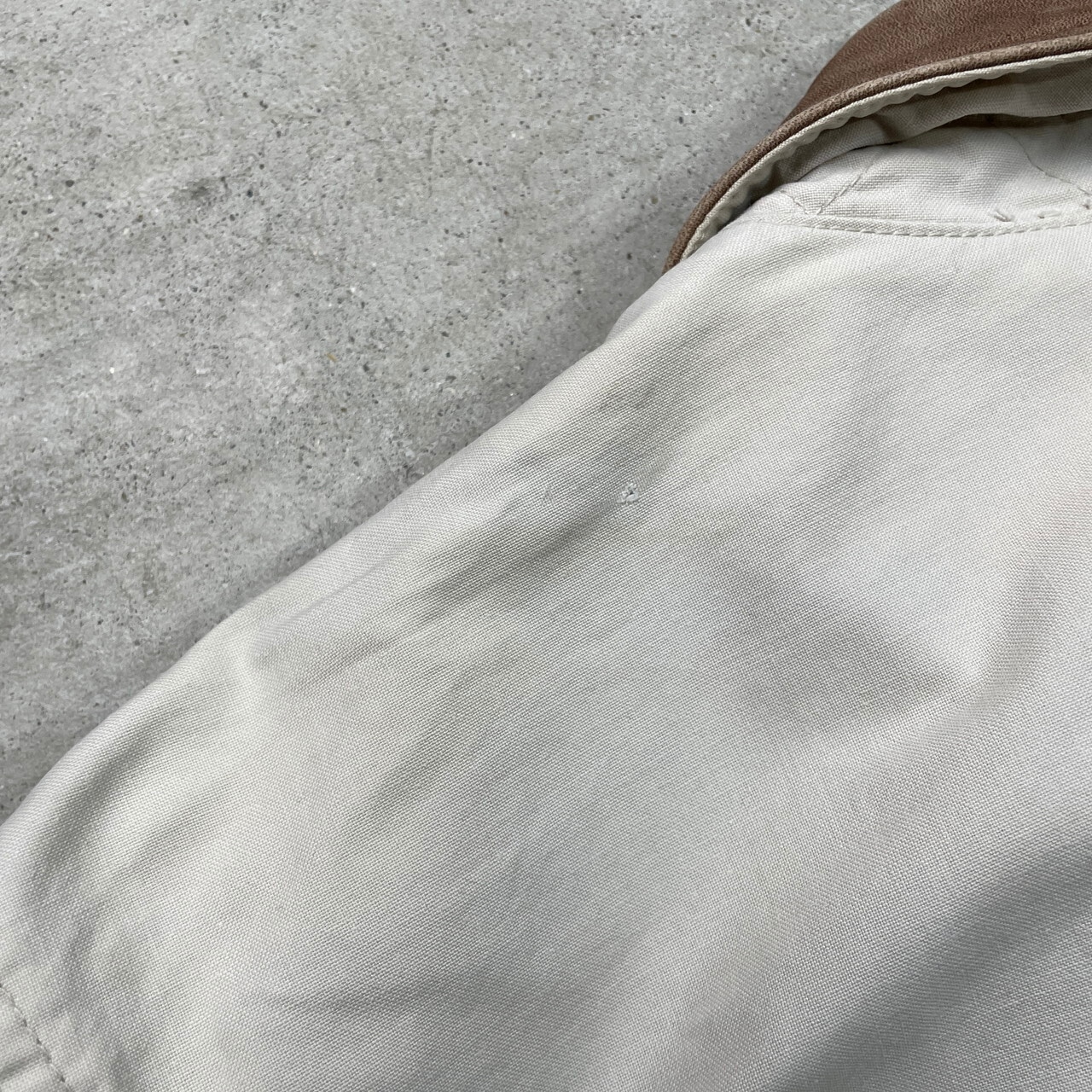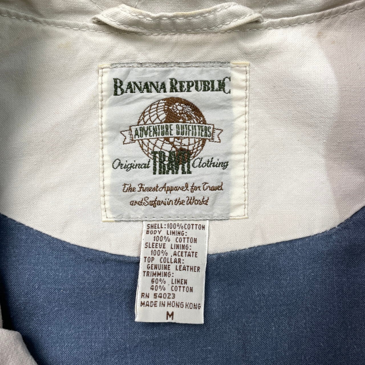 90年代 BANANA REPUBLIC バナナリパブリック TRAVEL 襟レザー ハンティングジャケット メンズXL相当 古着 90s VINTAGE ヴィンテージ バナリパ サファリジャケット カバーオール 白【アウトドアジャケット】/ホワイト