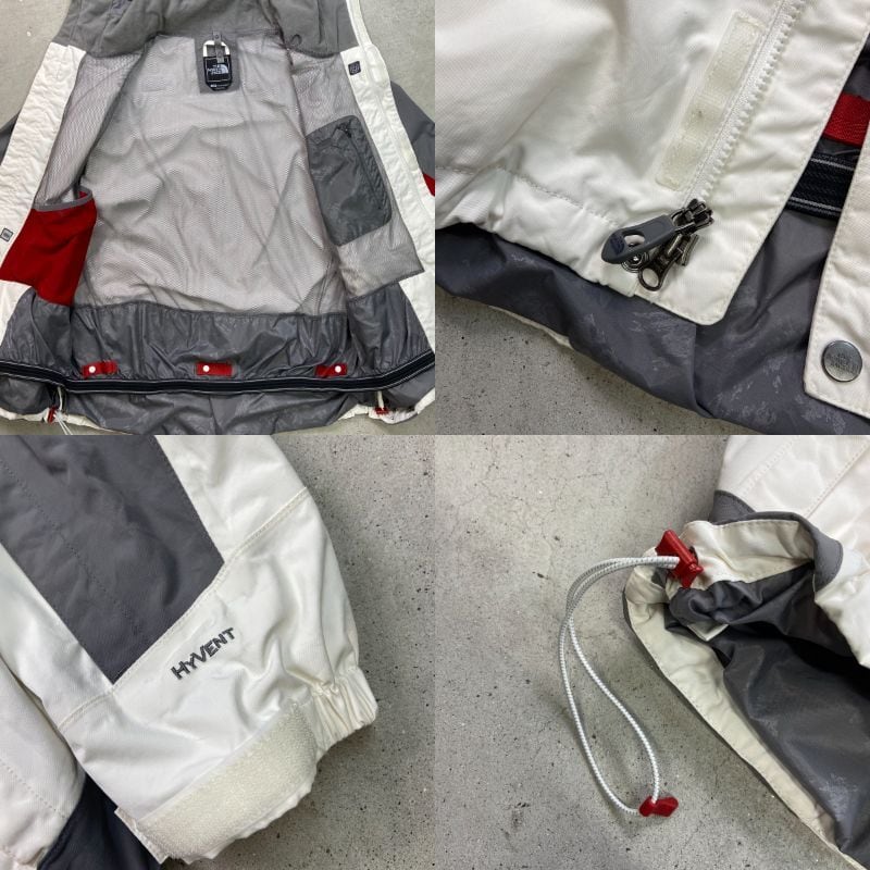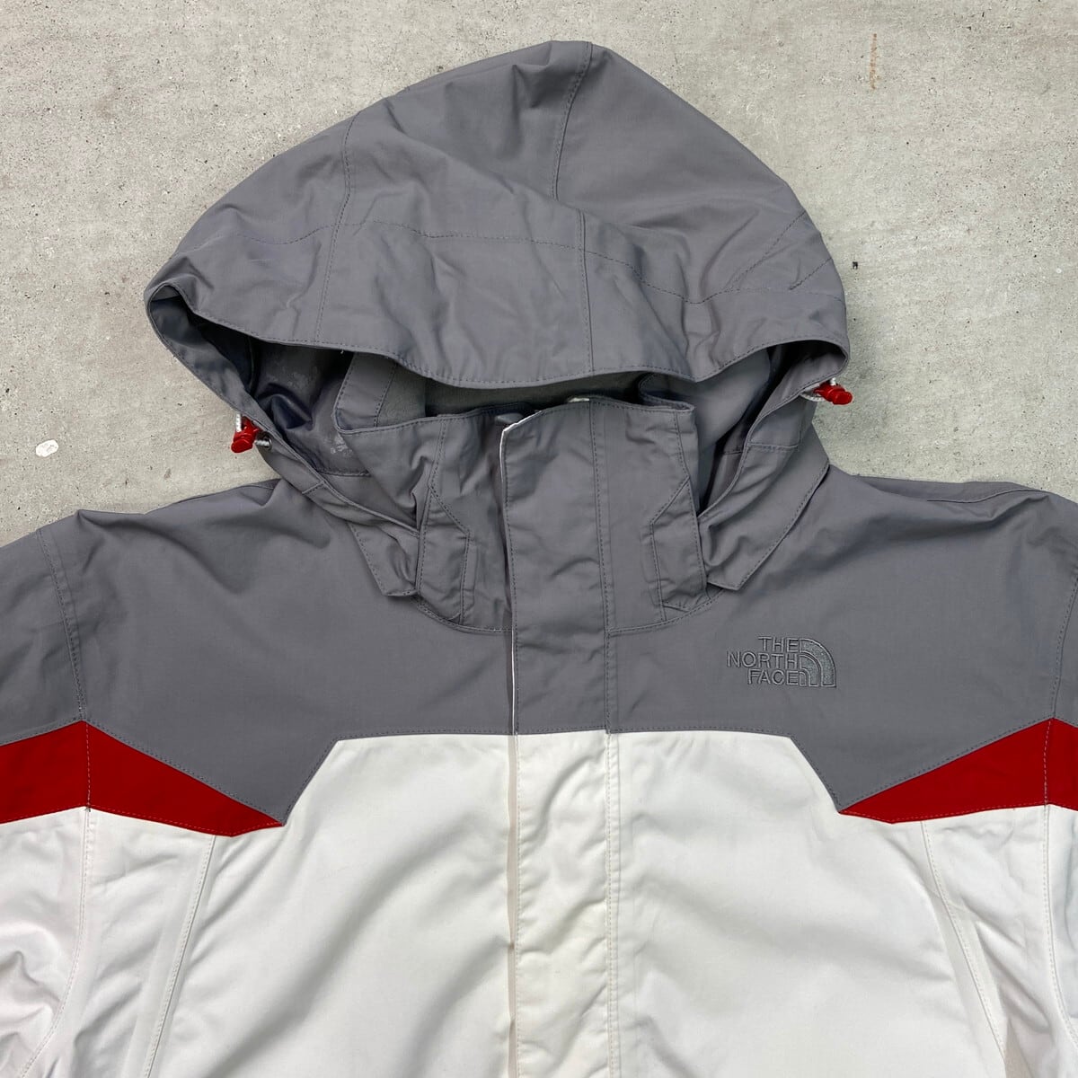 古着 THE NORTH FACE ザノースフェイス マウンテンパーカー メンズL USED HYVENT ハイベント 切り替えデザイン ナイロンジャケット フード着脱式 裾ドローコード付き ホワイト グレー レッド【アウトドアジャケット】/マルチカラー
