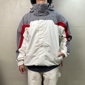 ■古着 THE NORTH FACE ザノースフェイス マウンテンパーカー メンズL USED HYVENT ハイベント 切り替えデザイン ナイロンジャケット フード着脱式 裾ドローコード付き ホワイト グレー レッド【アウトドアジャケット】/マルチカラー