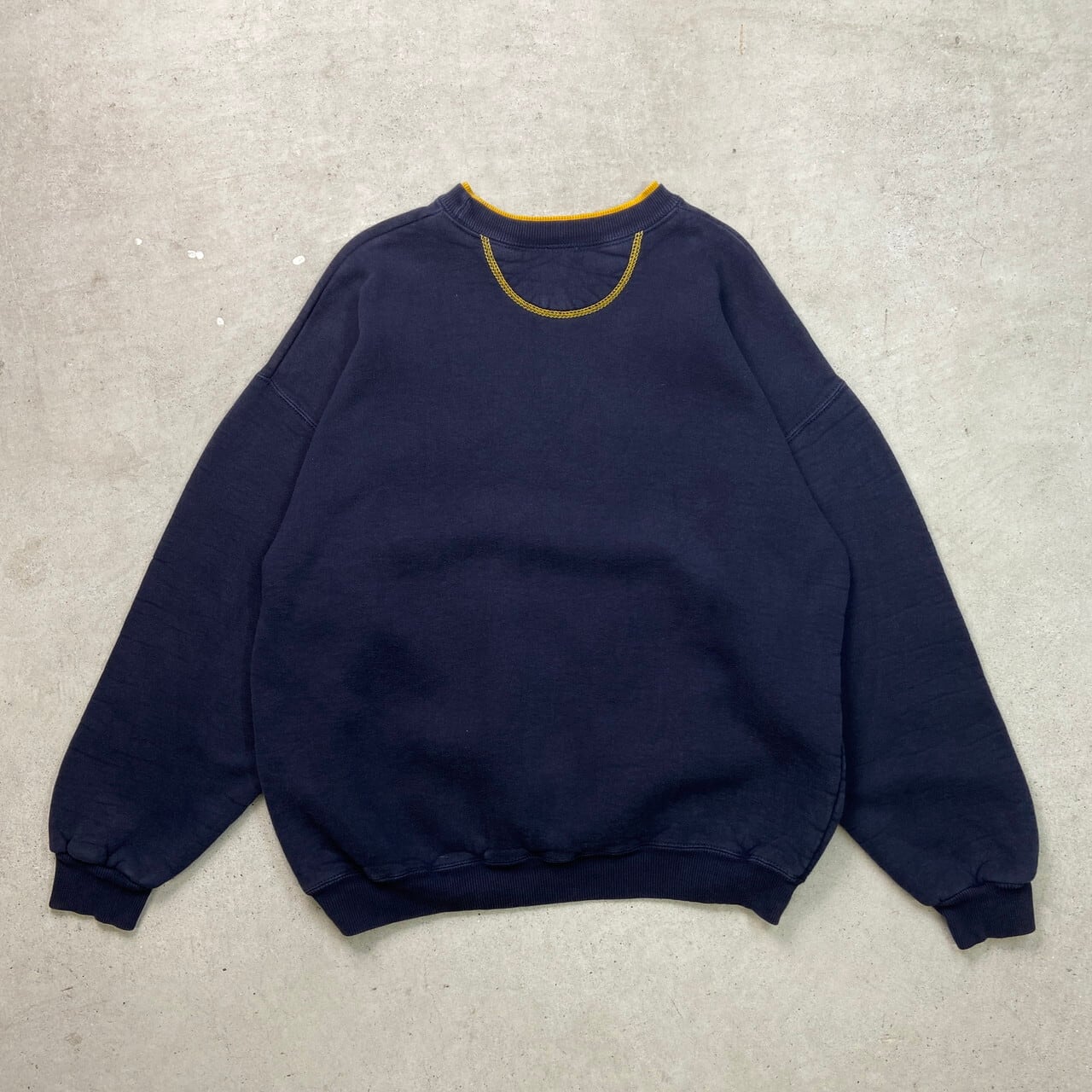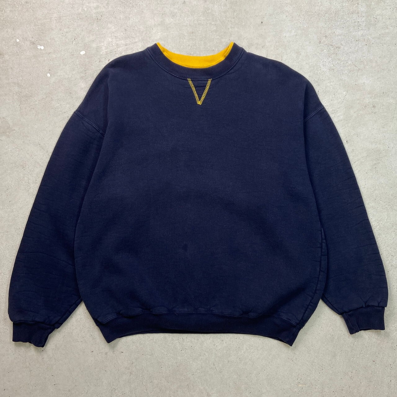古着 ブランクスウェットシャツ 無地 メンズXL相当 USED ヴィンテージ VINTAGE トレーナー 前Vガゼット ダークネイビー イエロー 紺色 黄色【スウェット】/ネイビー