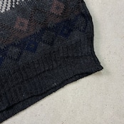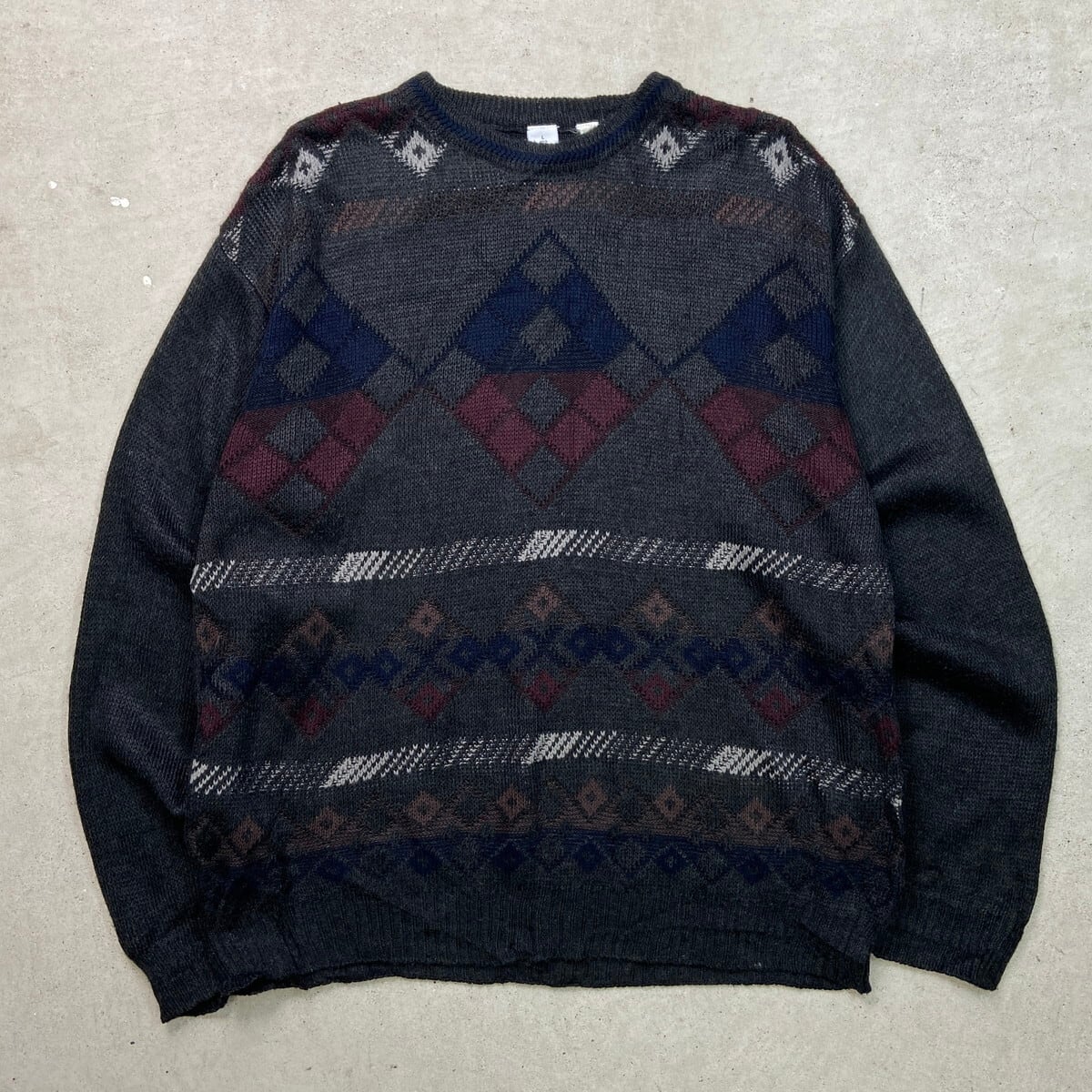 古着 Target アーガイルチェック アクリルニットセーター メンズL USED ブラック ブラウン ワインレッド【ニットセーター】/マルチカラー