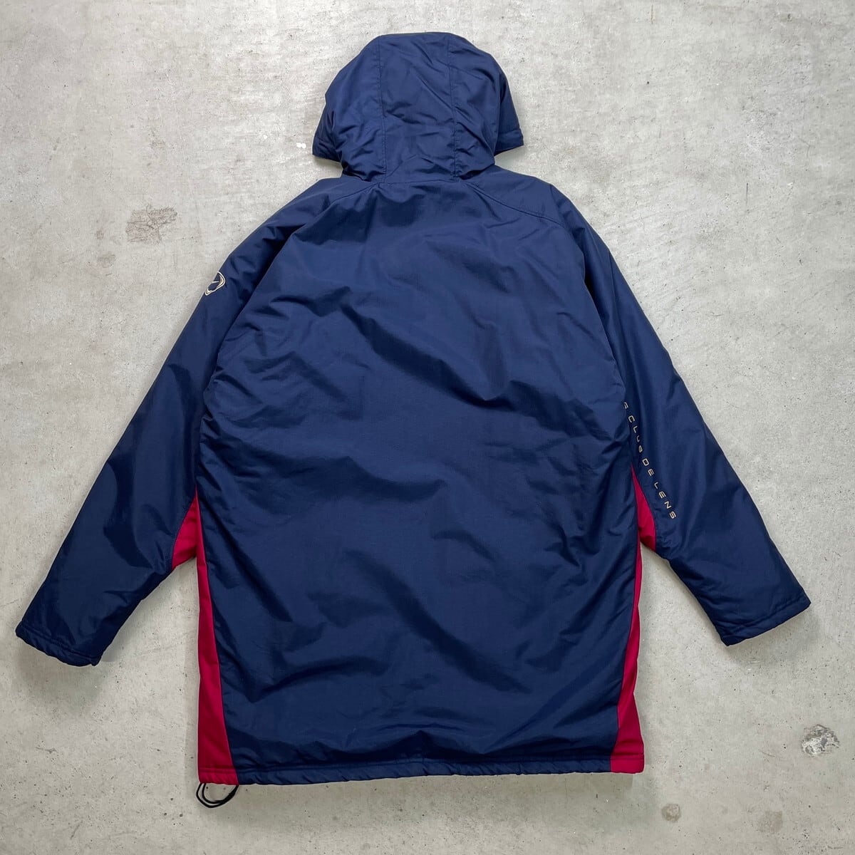 ■古着 NIKE ナイキ ナイロンジャケット メンズXL相当 90年代 90s VINTAGE ヴィンテージ USED RCランス サッカーチーム 中綿入り フリースライナー 裾ドローコード 紺色 レッド【ナイロンジャケット】/ネイビー
