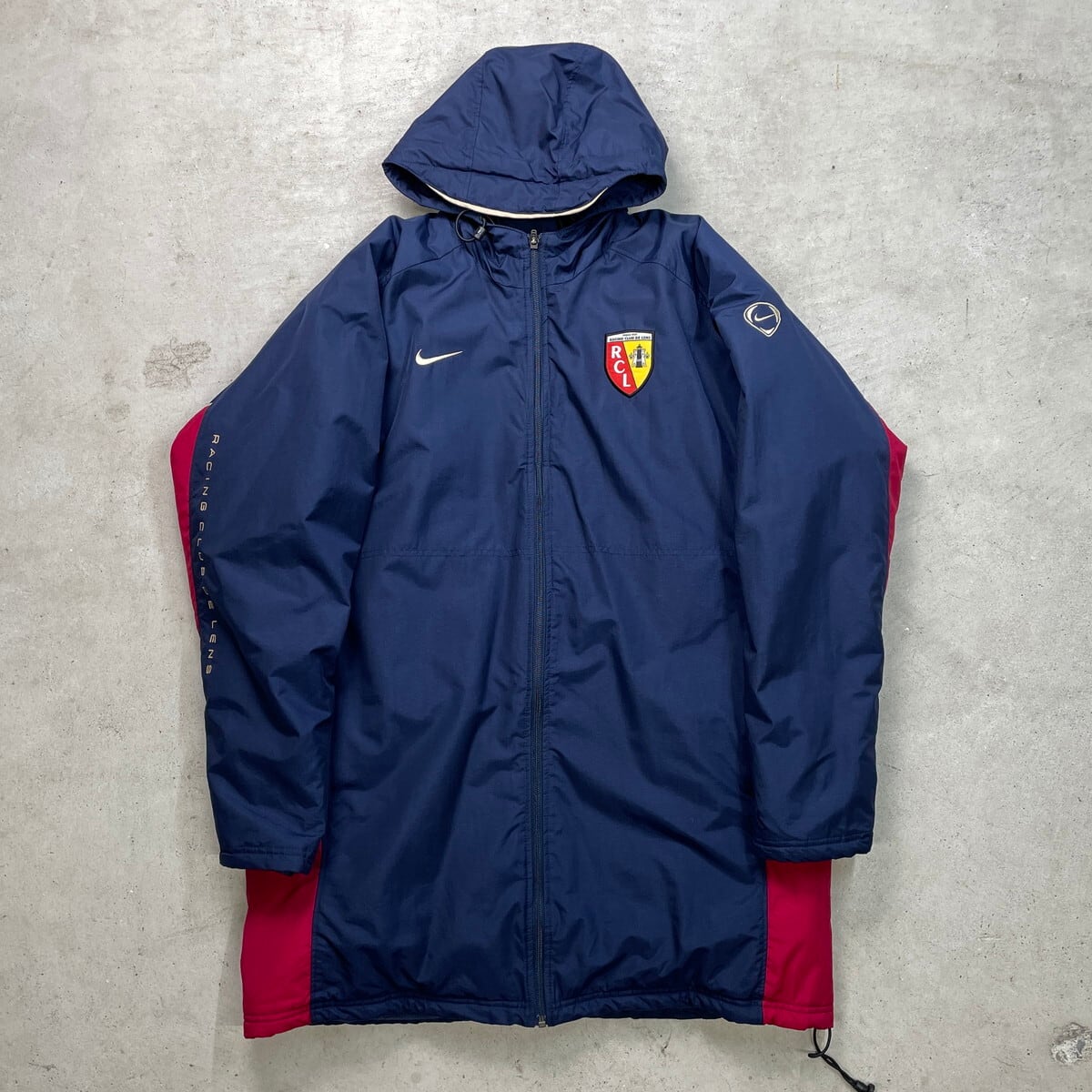 古着 NIKE ナイキ ナイロンジャケット メンズXL相当 90年代 90s VINTAGE ヴィンテージ USED RCランス サッカーチーム 中綿入り フリースライナー 裾ドローコード 紺色 レッド【ナイロンジャケット】/ネイビー
