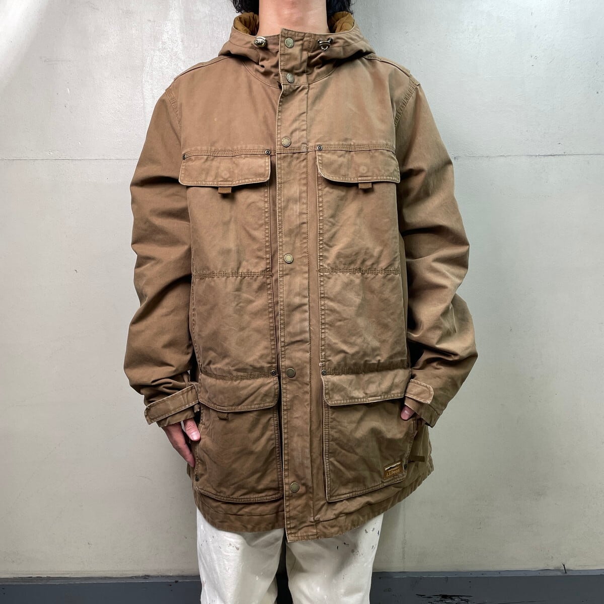■古着 L.L.Bean エルエルビーン ユーティリティジャケット メンズ2XL USED 中綿入り フィールドジャケットタイプ キルティングライナー プリマロフト ビッグサイズ 大きいサイズ コーヒーブラウン【アウトドアジャケット】/ブラウン