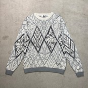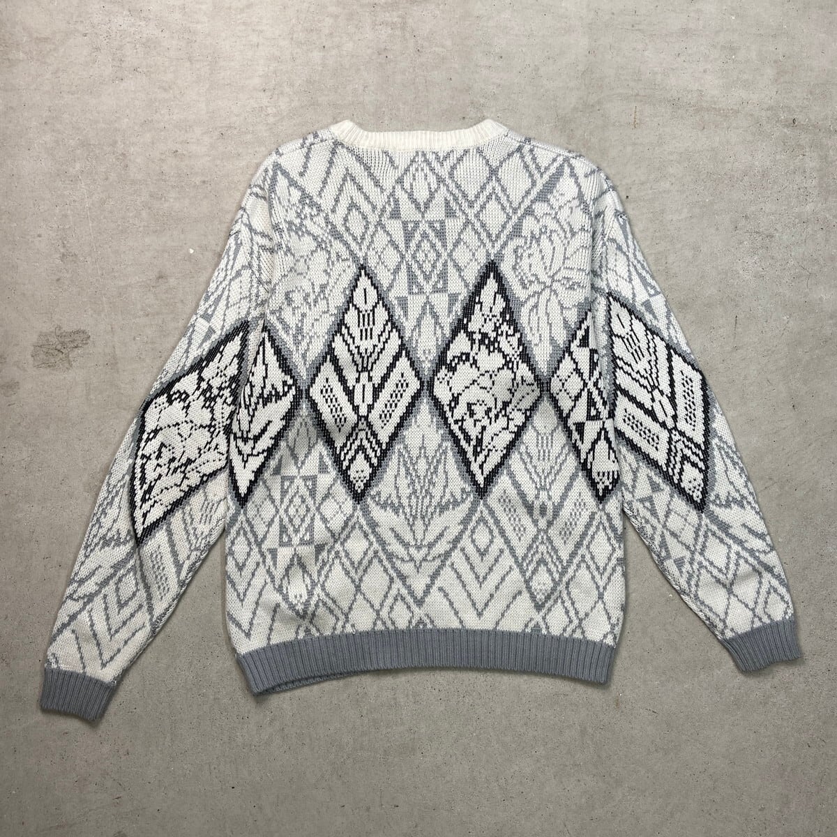 古着 Jed 総柄 アクリルニットセーター メンズM 90年代 90s VINTAGE ヴィンテージ USED 幾何学模様 ブラック ホワイト グレー【ニットセーター】/マルチカラー