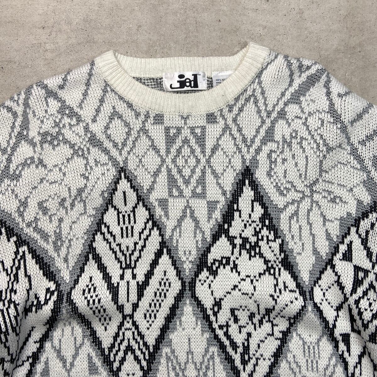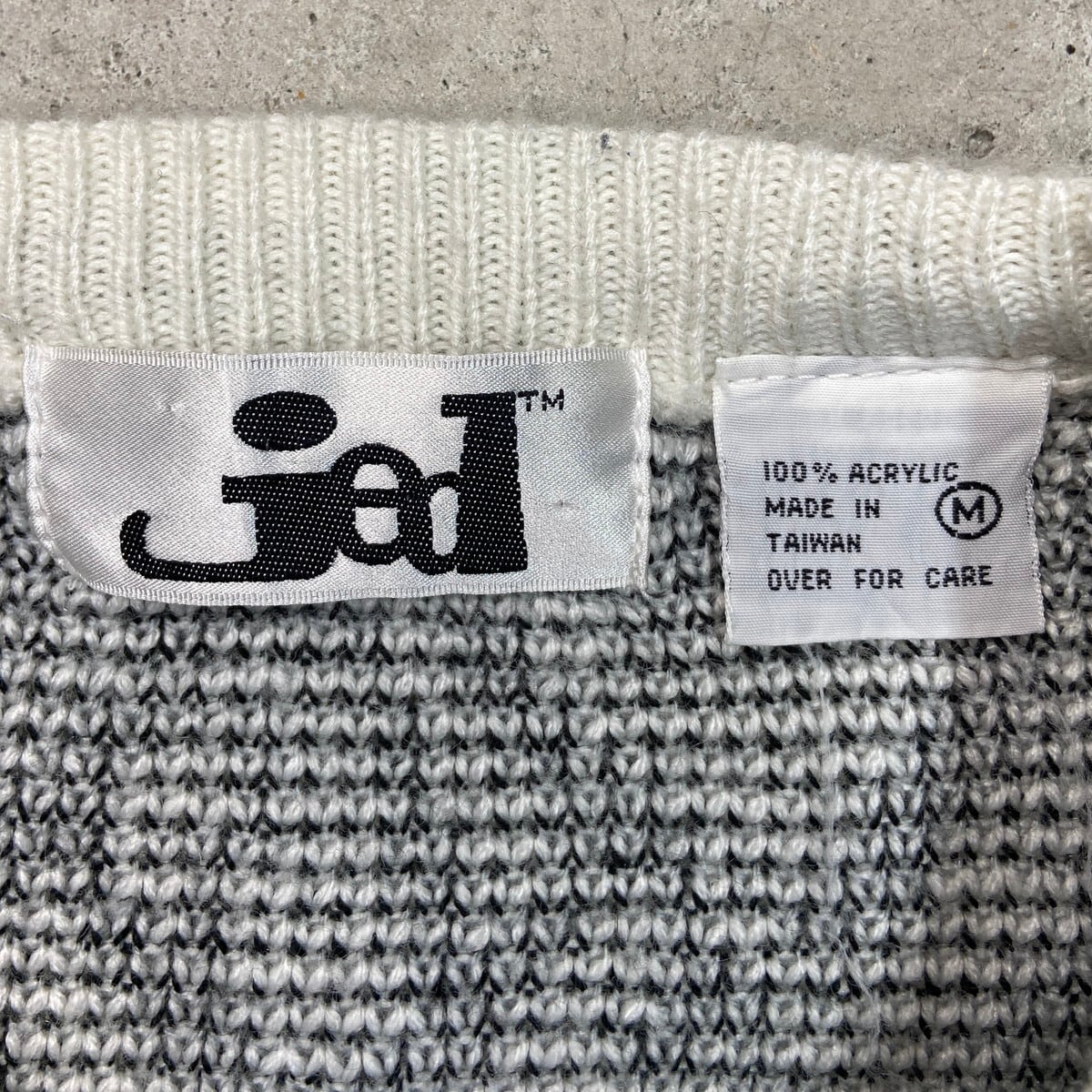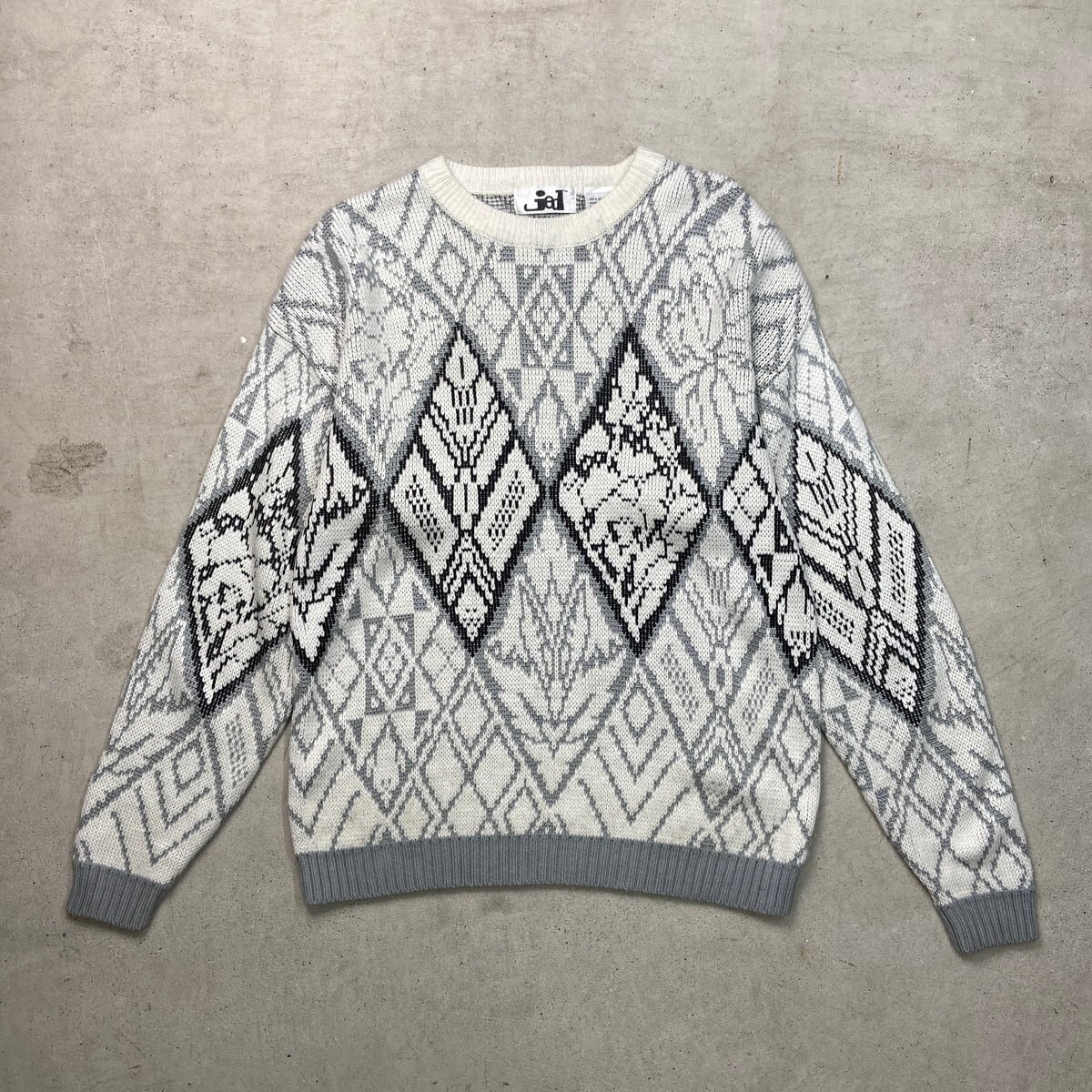 ■古着 Jed 総柄 アクリルニットセーター メンズM 90年代 90s VINTAGE ヴィンテージ USED 幾何学模様 ブラック ホワイト グレー【ニットセーター】/マルチカラー
