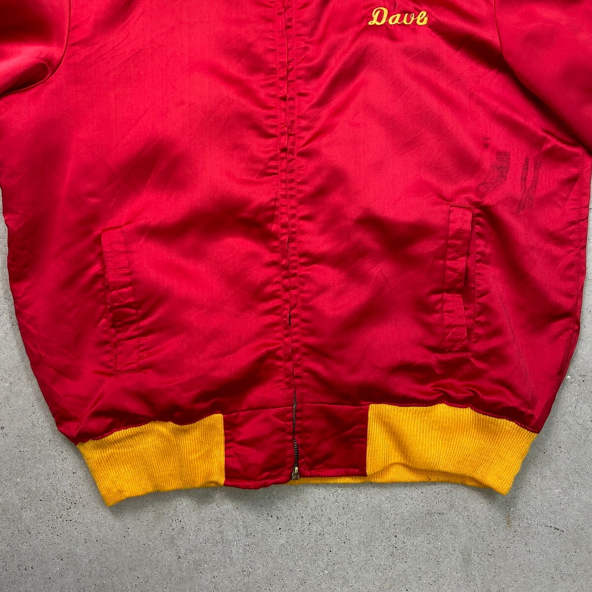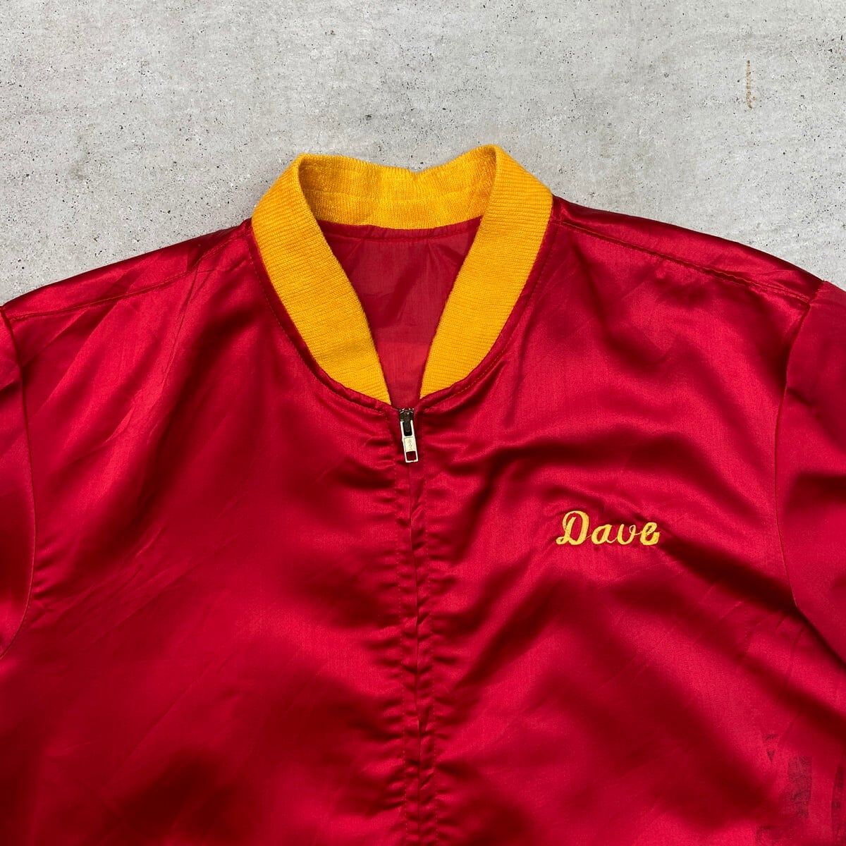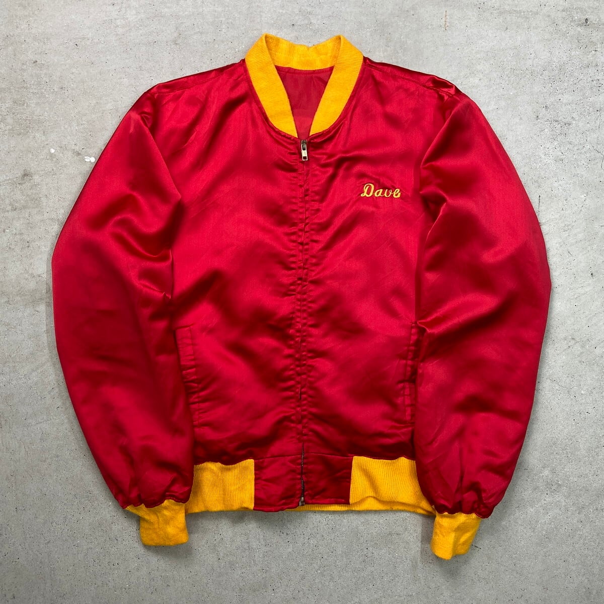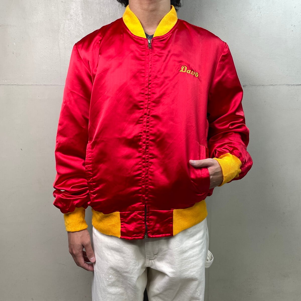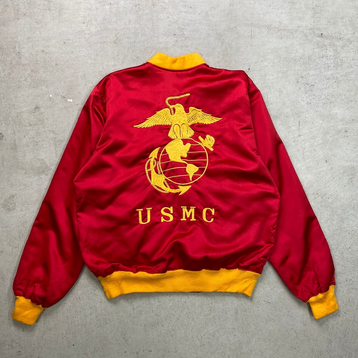 古着 USMC サテンスタジャン メンズL相当 アメカジ ヴィンテージ VINTAGE USED アメリカ海兵隊 鷲 ワシ ロゴ刺繍 マスタードイエロー 赤色【ナイロンジャケット】/レッド