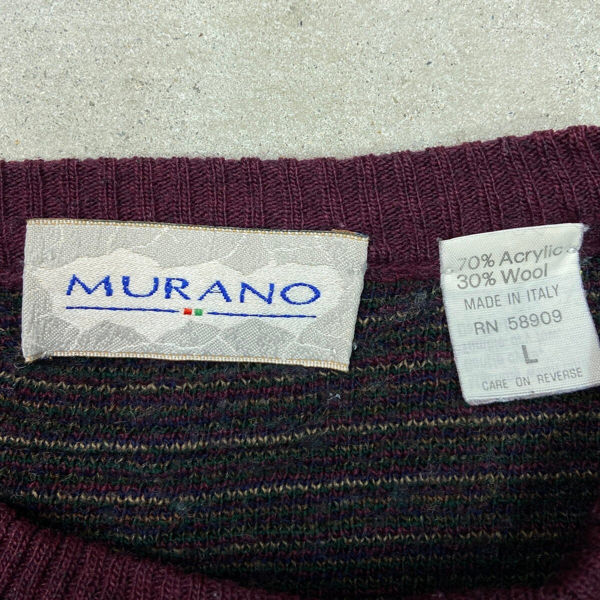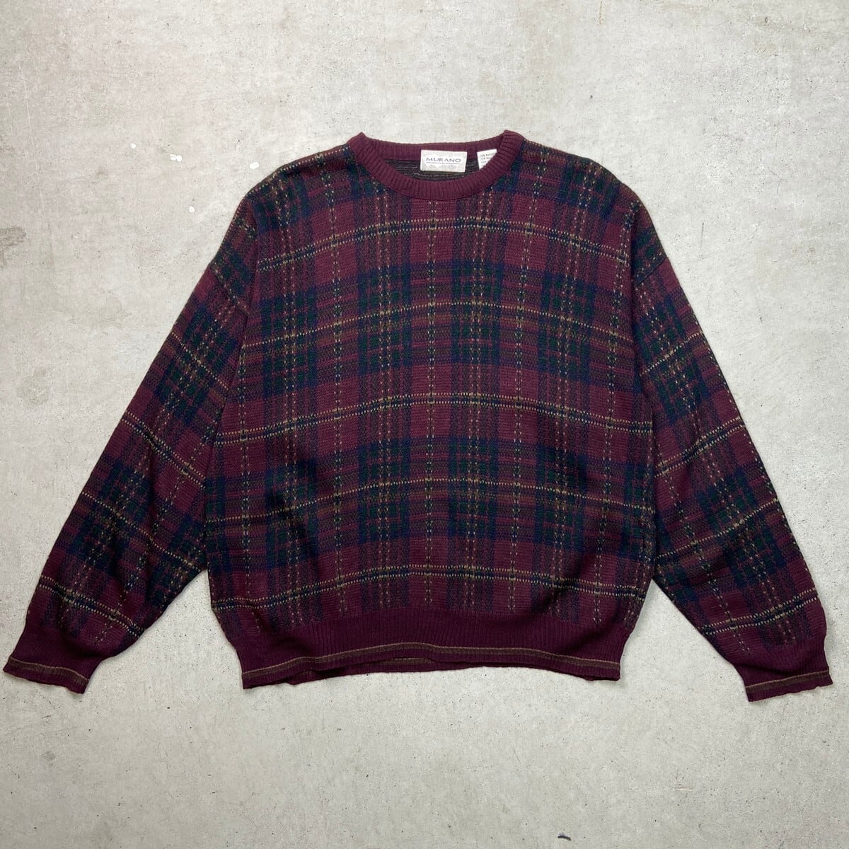 古着 MURANO チェック柄 アクリルニットセーター メンズL イタリア製 USED アクリル×ウール【ニットセーター】/ワインレッド