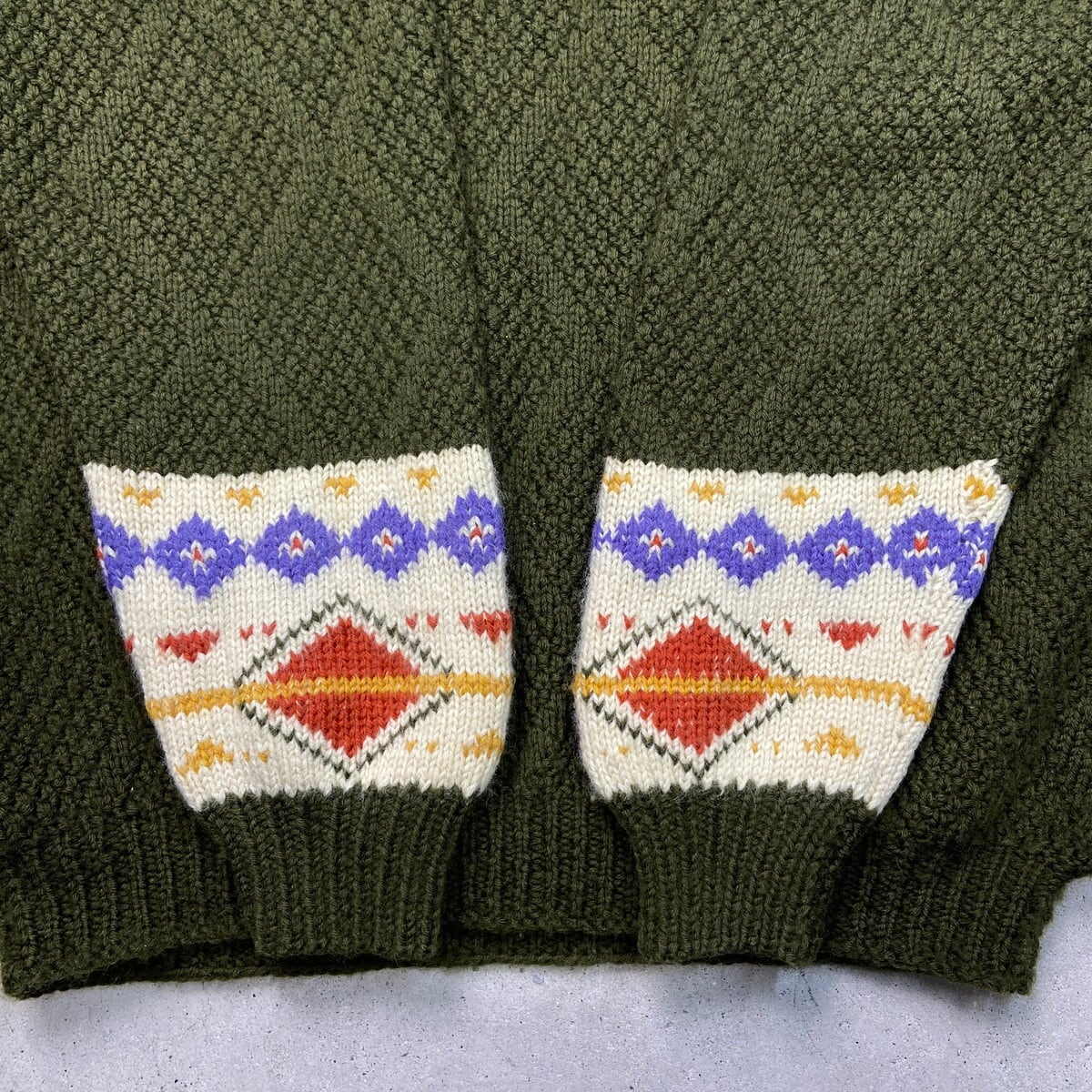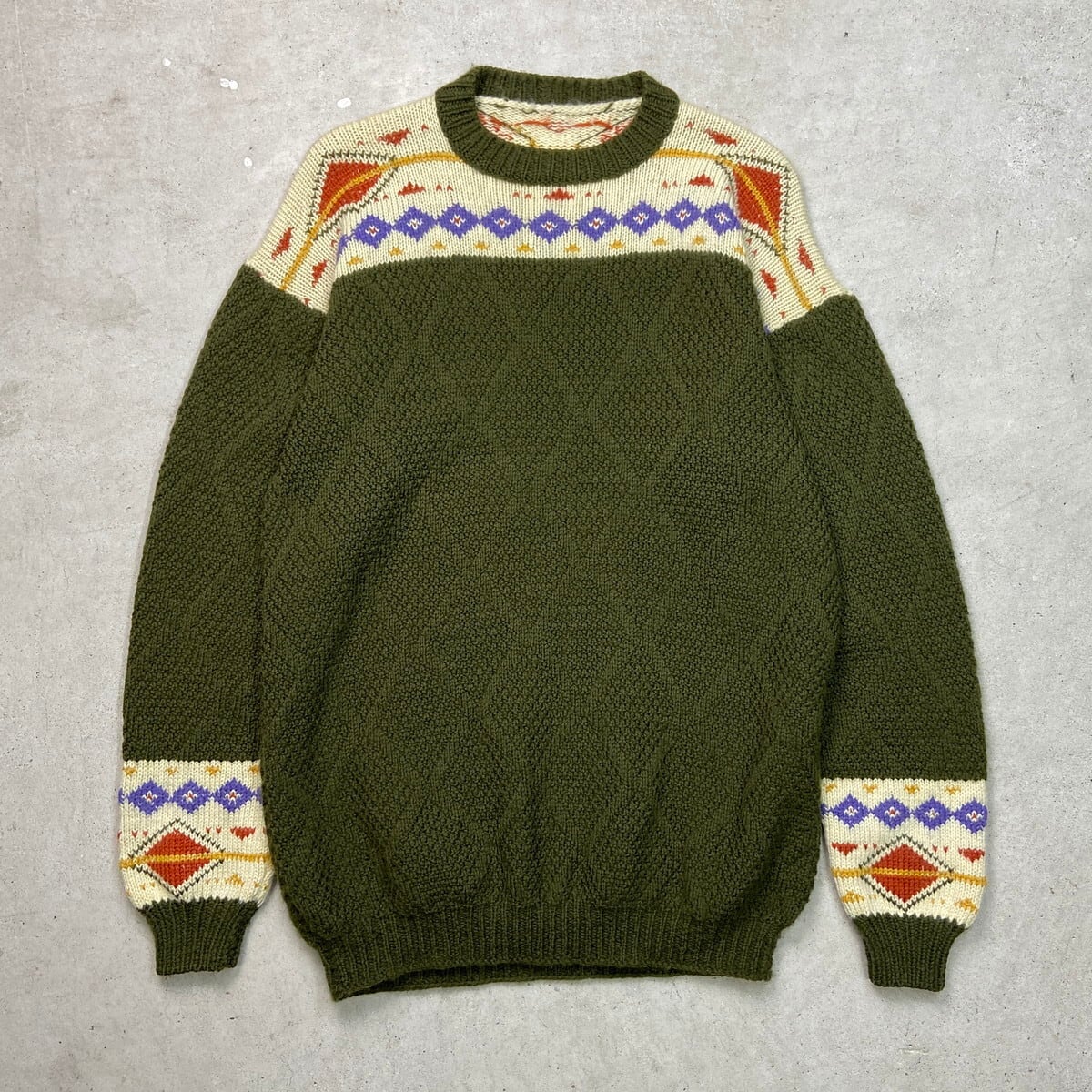 古着 UNKNOWN ニットセーター メンズM相当 レディース USED 模様編み オリーブグリーン【ニットセーター】/グリーン
