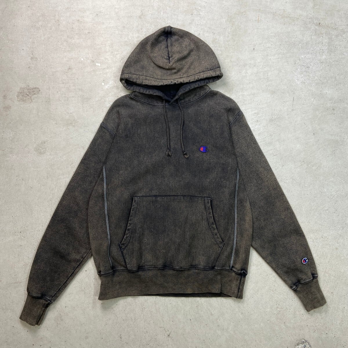 ■Champion チャンピオン リバースウィーブ スウェットパーカー メンズL相当 古着 ヴィンテージ加工 後染め REVERSE WEAVE プルオーバー トレーナー バックプリント フェードブラック【パーカー】/ブラック