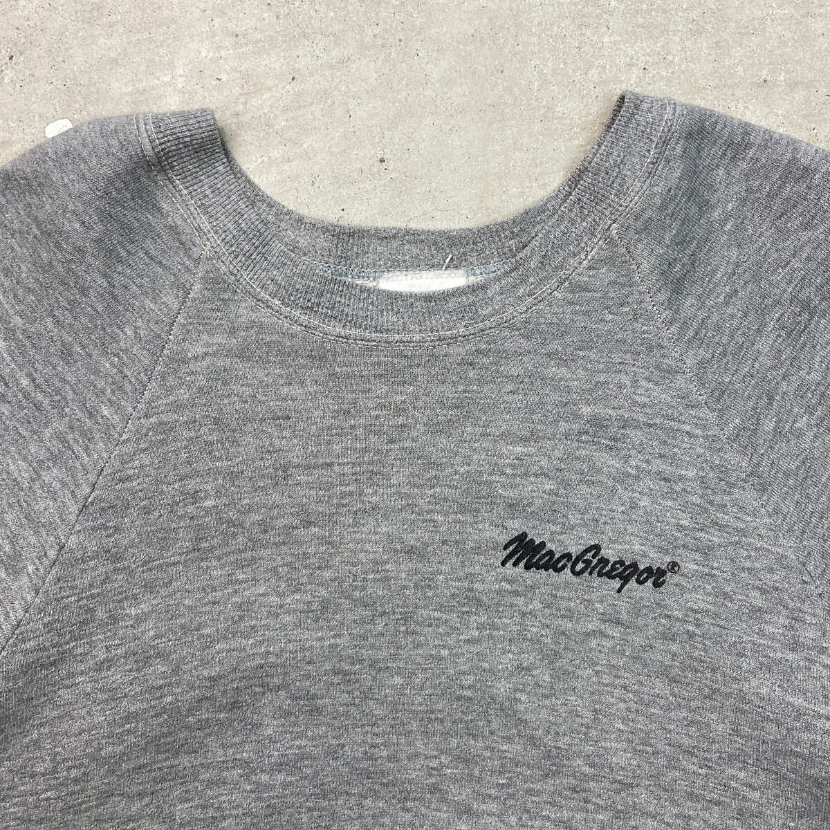 古着 Mac Gregor ワンポイントロゴプリント スウェットシャツ メンズS相当 80年代 80s VINTAGE ヴィンテージ USA製 USED アメカジ ラグランスリーブ トレーナー 灰色【スウェット】/グレー