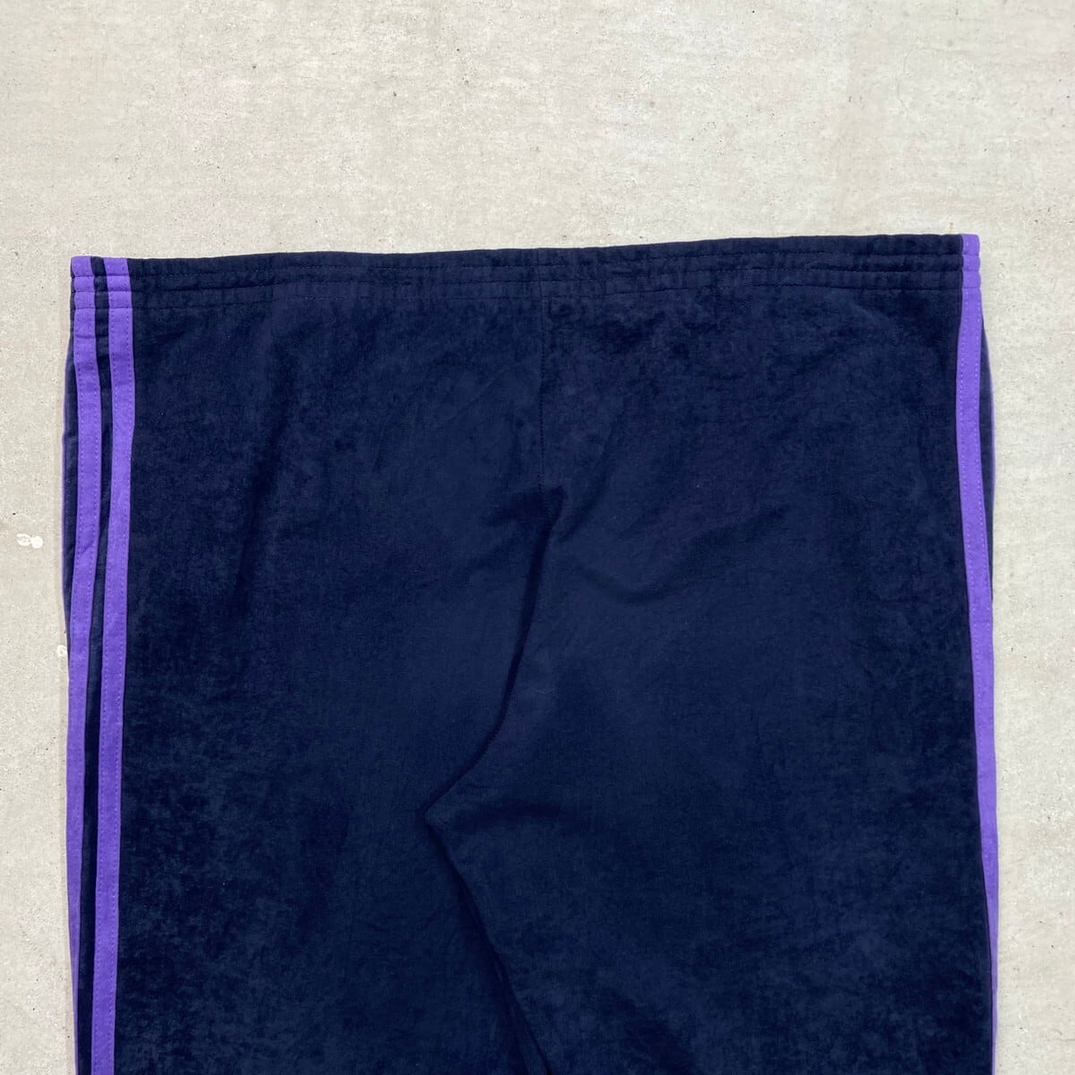 70年代 フランス製 VENTEX社製 adidas アディダス ベロアジャージパンツ メンズW40相当 古着 70s VINTAGE ヴィンテージ ビッグサイズ 大きいサイズ 紺色 パープル グリーン【ロングパンツ】/ネイビー