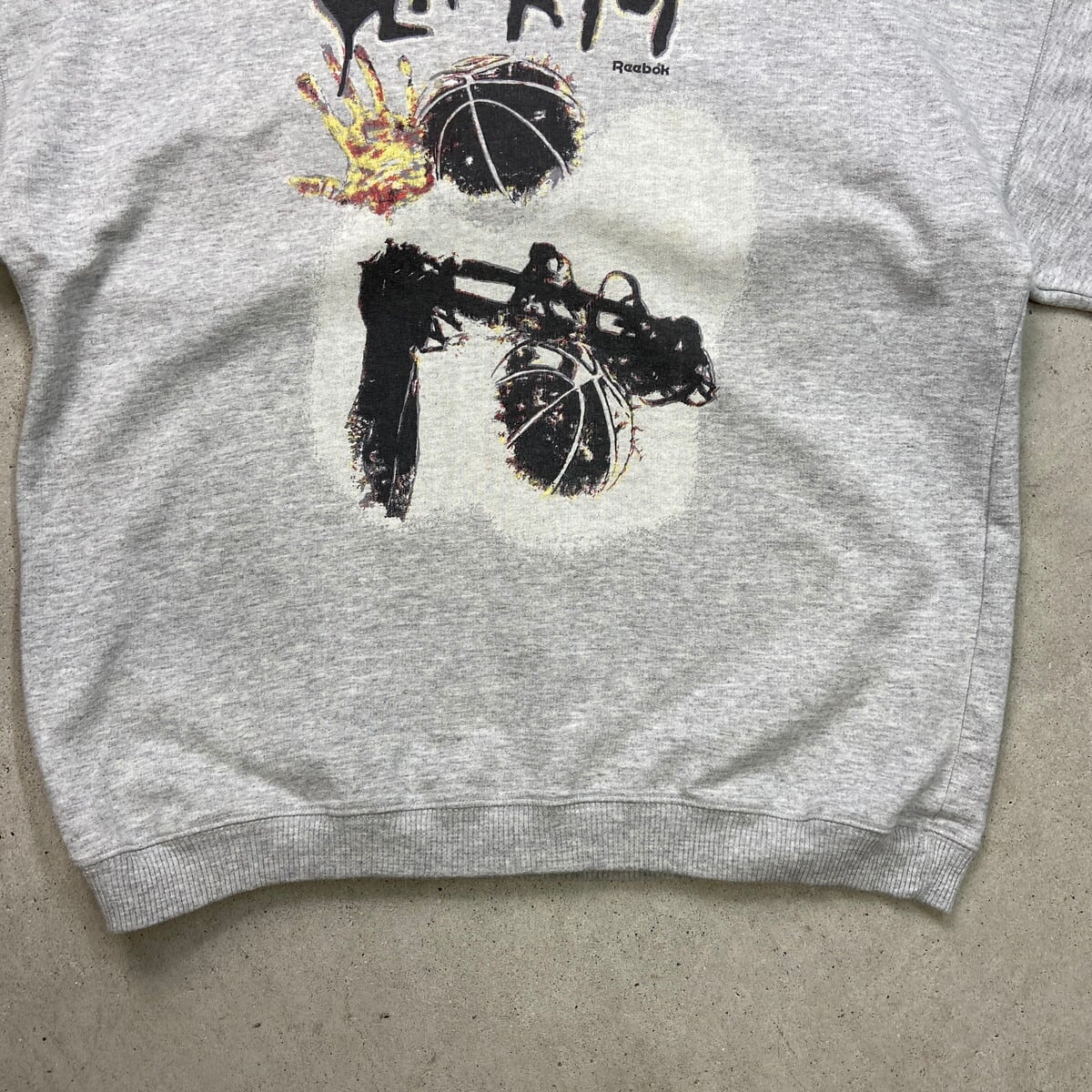 古着 Reebok リーボック BLACKTOP プリント ロングTシャツ メンズM 90年代 90s VINTAGE ヴィンテージ スペイン製 USED バスケットボール ライトグレー 灰色【ロングTシャツ】/グレー
