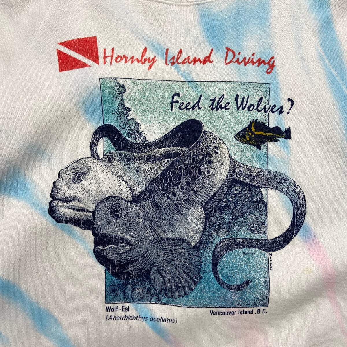 古着 Hornby Island Diving スーベニアプリント スウェットシャツ メンズS相当 90年代 90s ヴィンテージ VINTAGE USED バンクーバー 魚 アニマル ダイビング ラグランスリーブ トレーナー ブルー ピンク【スウェット】/ホワイト
