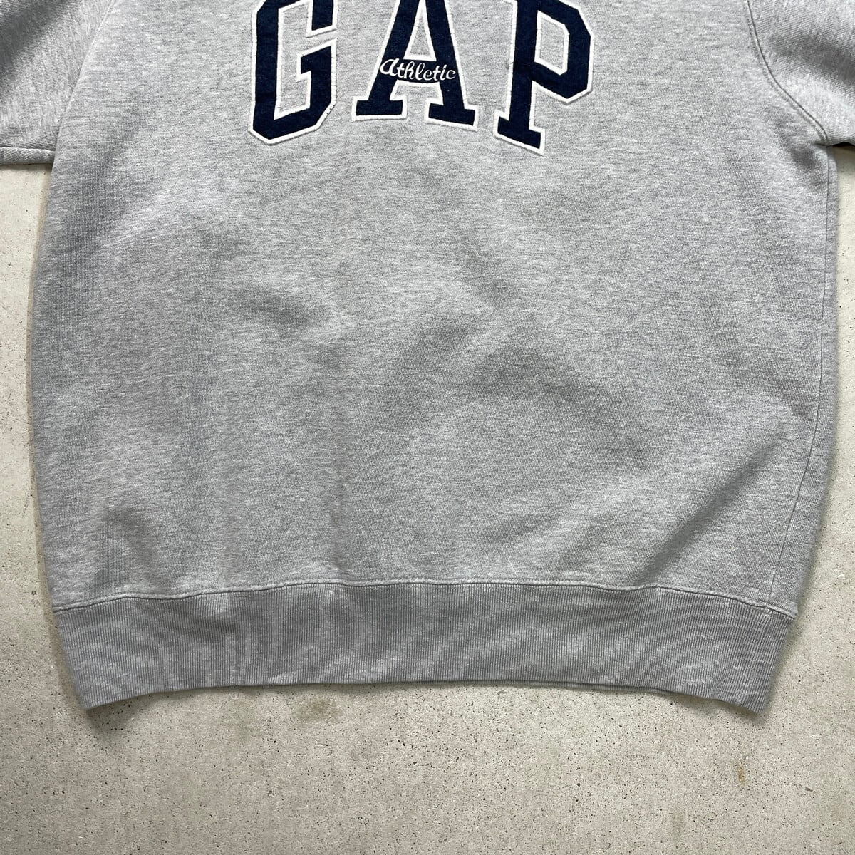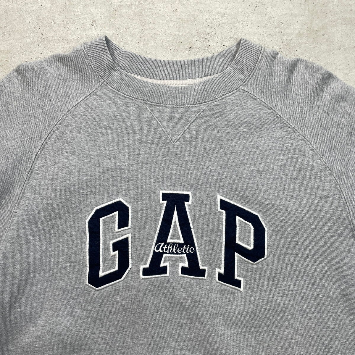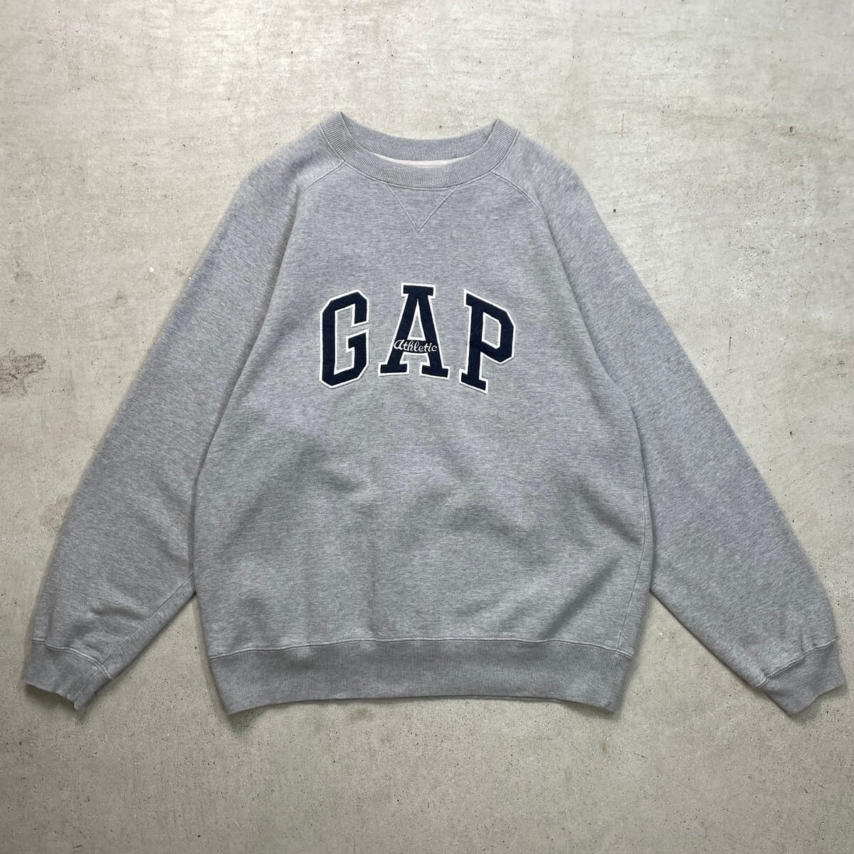 90~00年代 USA製 GAP オールドギャップ ビッグロゴワッペン スウェットシャツ メンズL相当 古着 90s 00s VINTAGE ヴィンテージ Y2K アメカジ 前Vガゼット ラグランスリーブ 灰色【スウェット】/グレー
