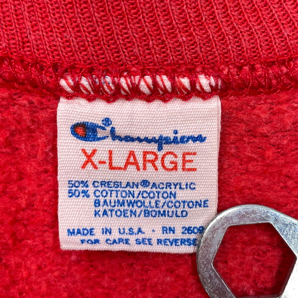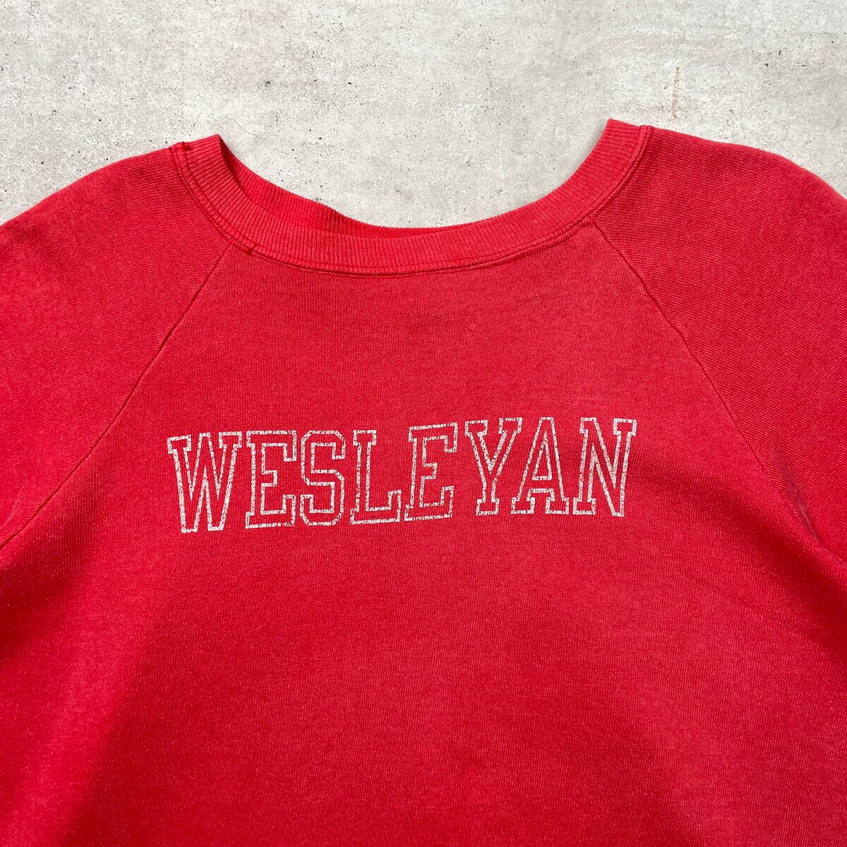 80年代 USA製 トリコタグ Champion チャンピオン WESLEYAN カレッジプリント スウェットシャツ メンズL相当 古着 80s ヴィンテージ VINTAGE 赤【スウェット】/レッド
