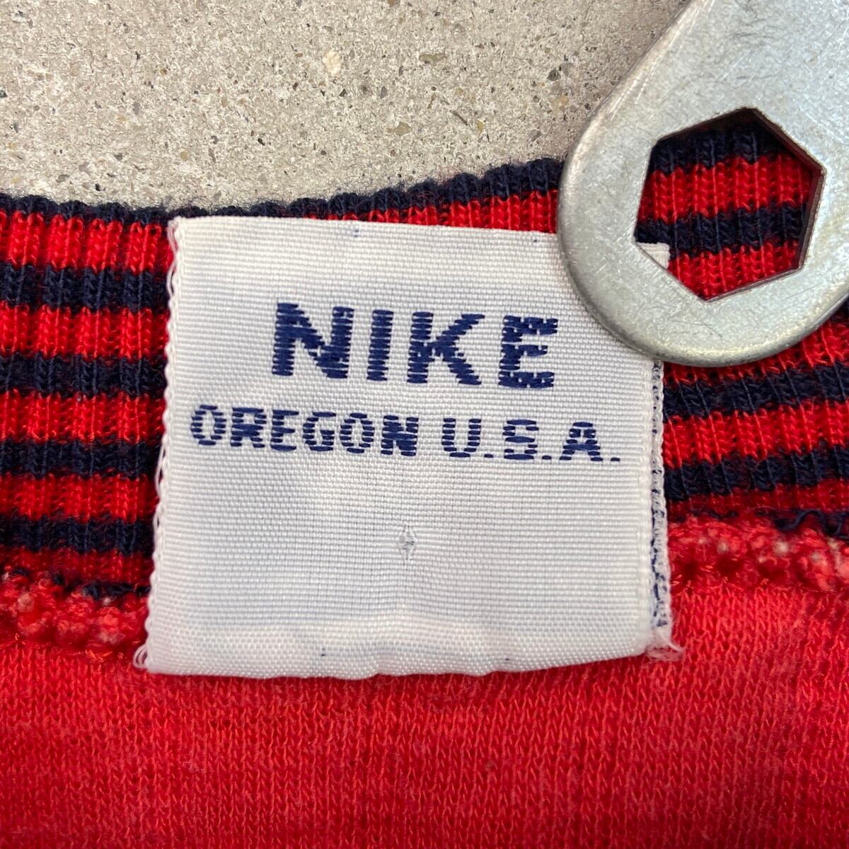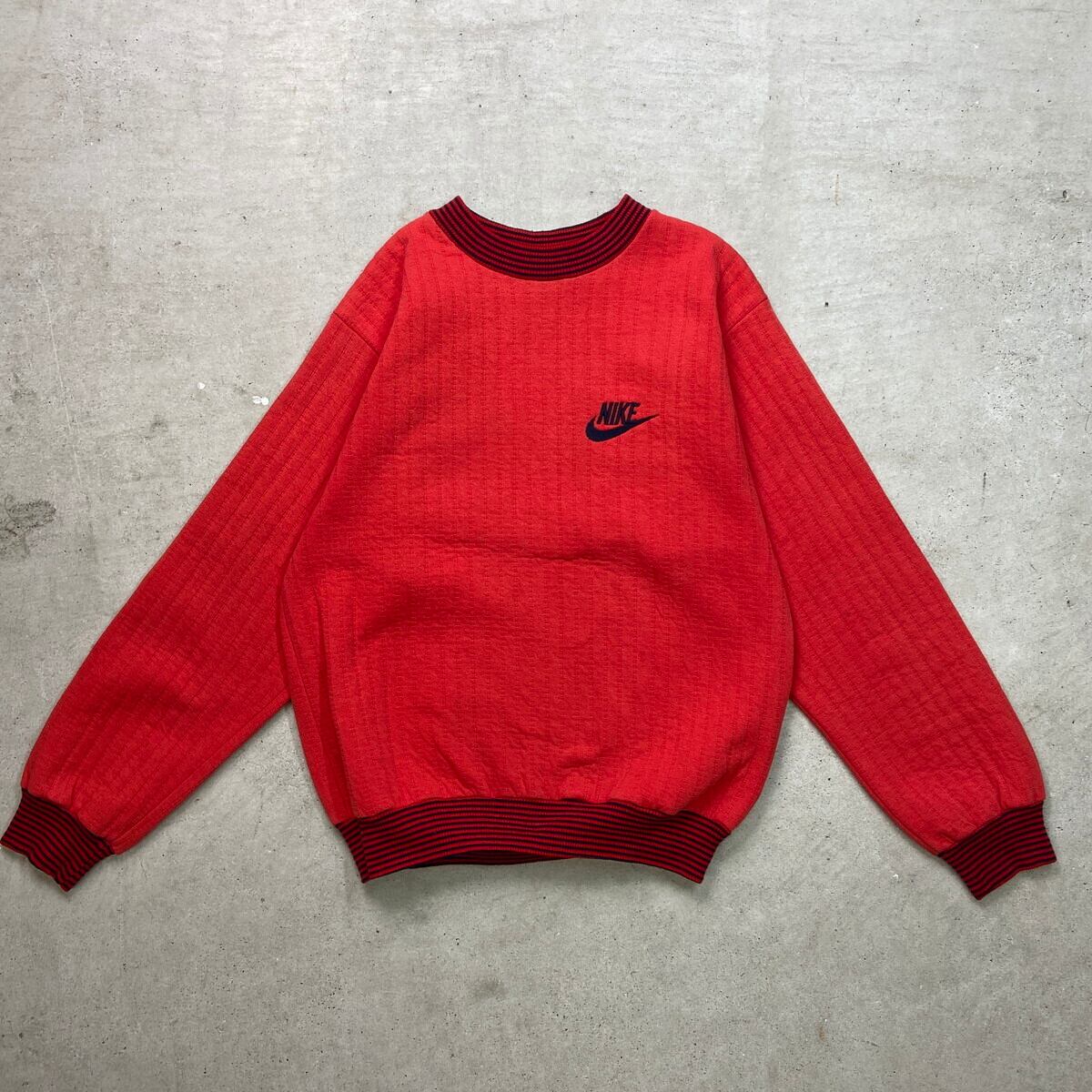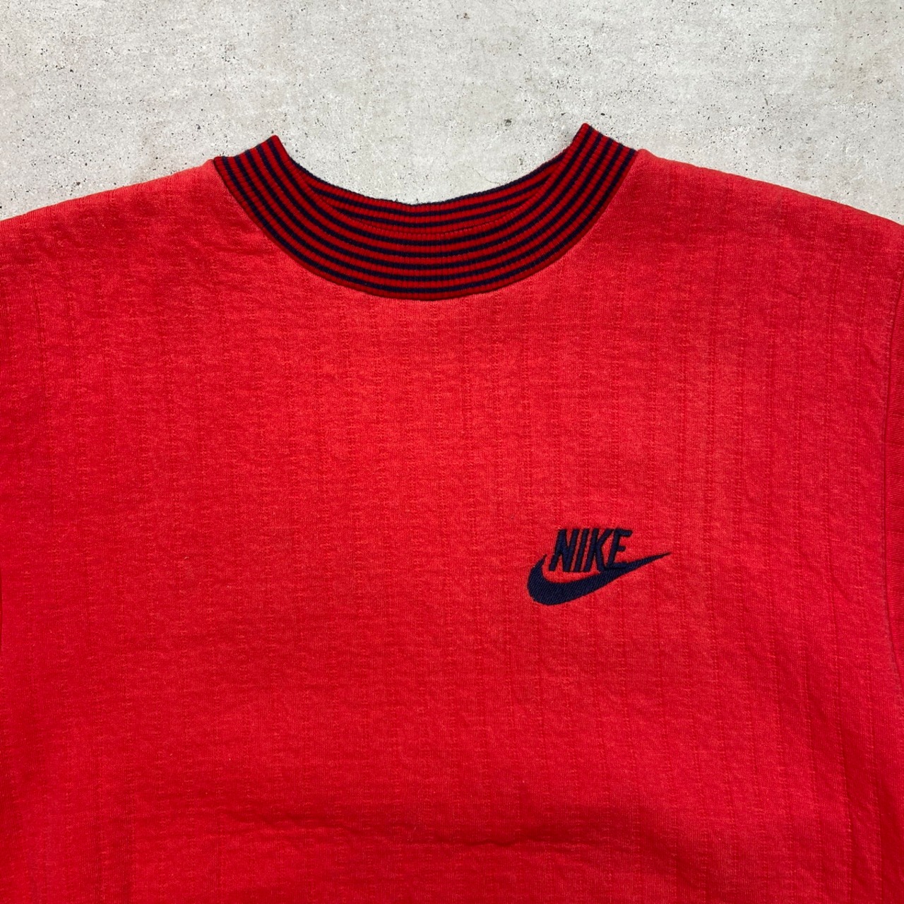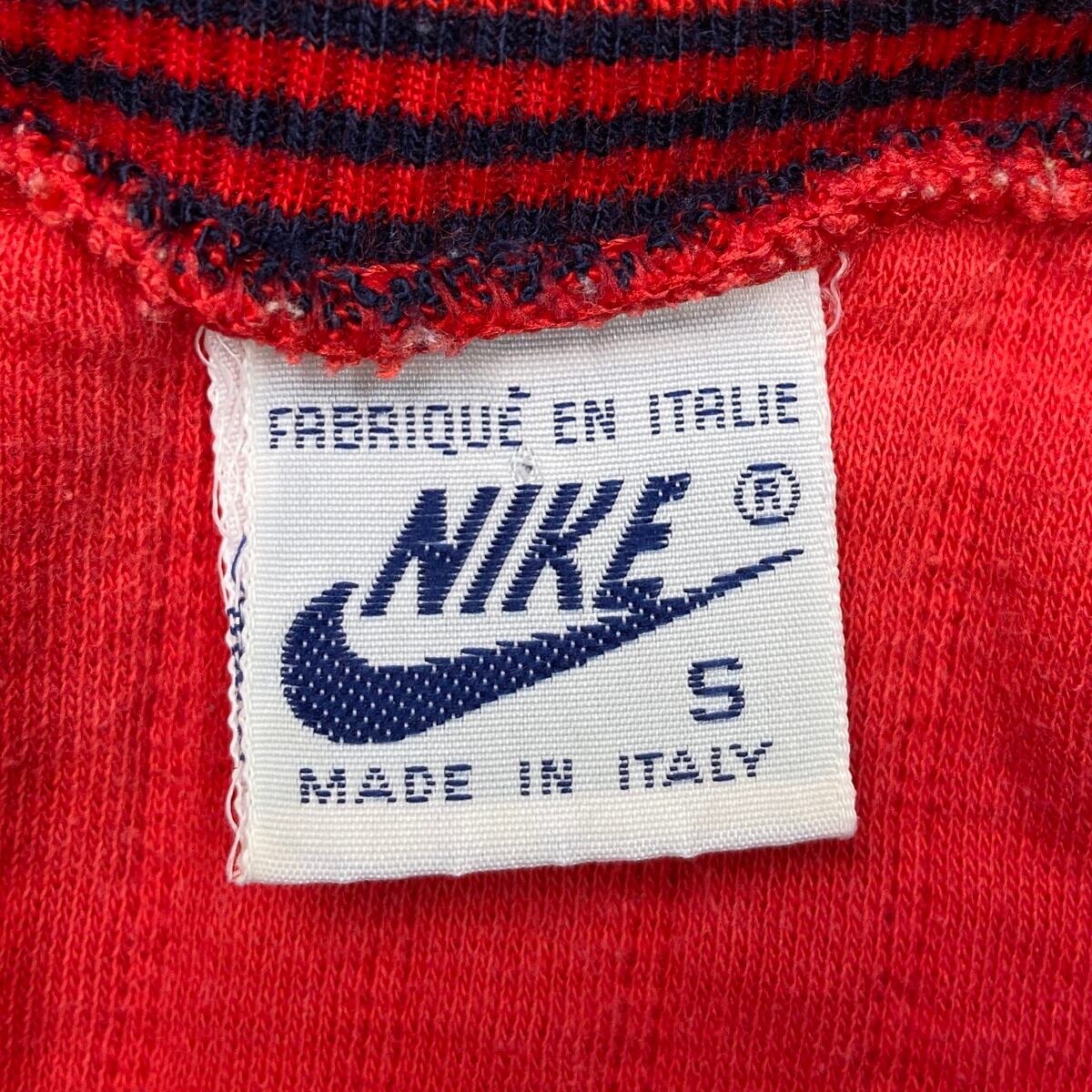 70年代 イタリア製 NIKE ナイキ スウェットシャツ メンズS 古着 70S VINTAGE ヴィンテージ ワンポイントロゴ刺繍 ボーダーリブ 赤【スウェット】/レッド