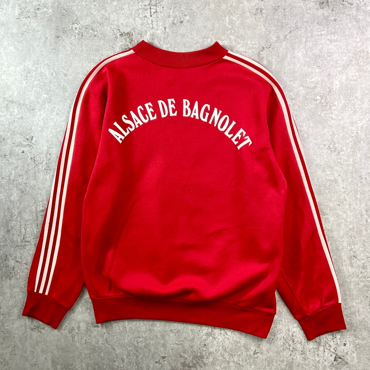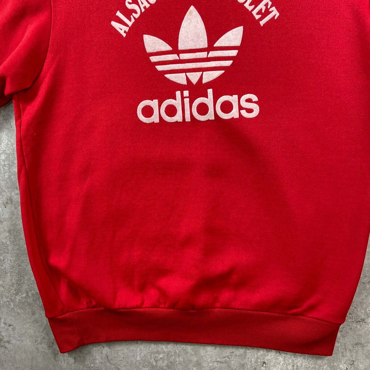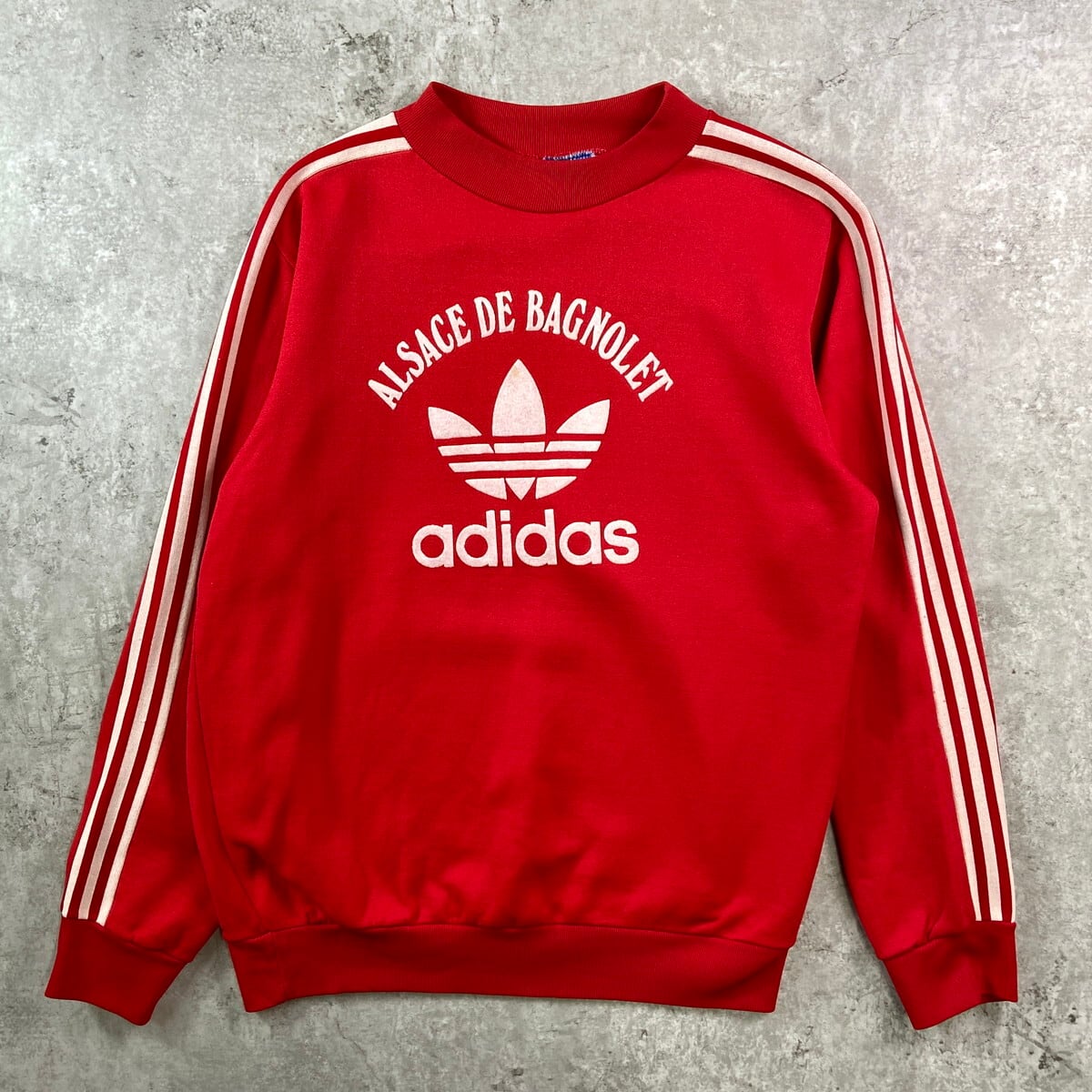 ■70年代 フランス製 VENTEX社製 adidas アディダス トレフォイルロゴ スウェットシャツ メンズM相当 古着 70s ヴィンテージ VINTAGE トレーナー フロッキープリント 赤【スウェット】/レッド