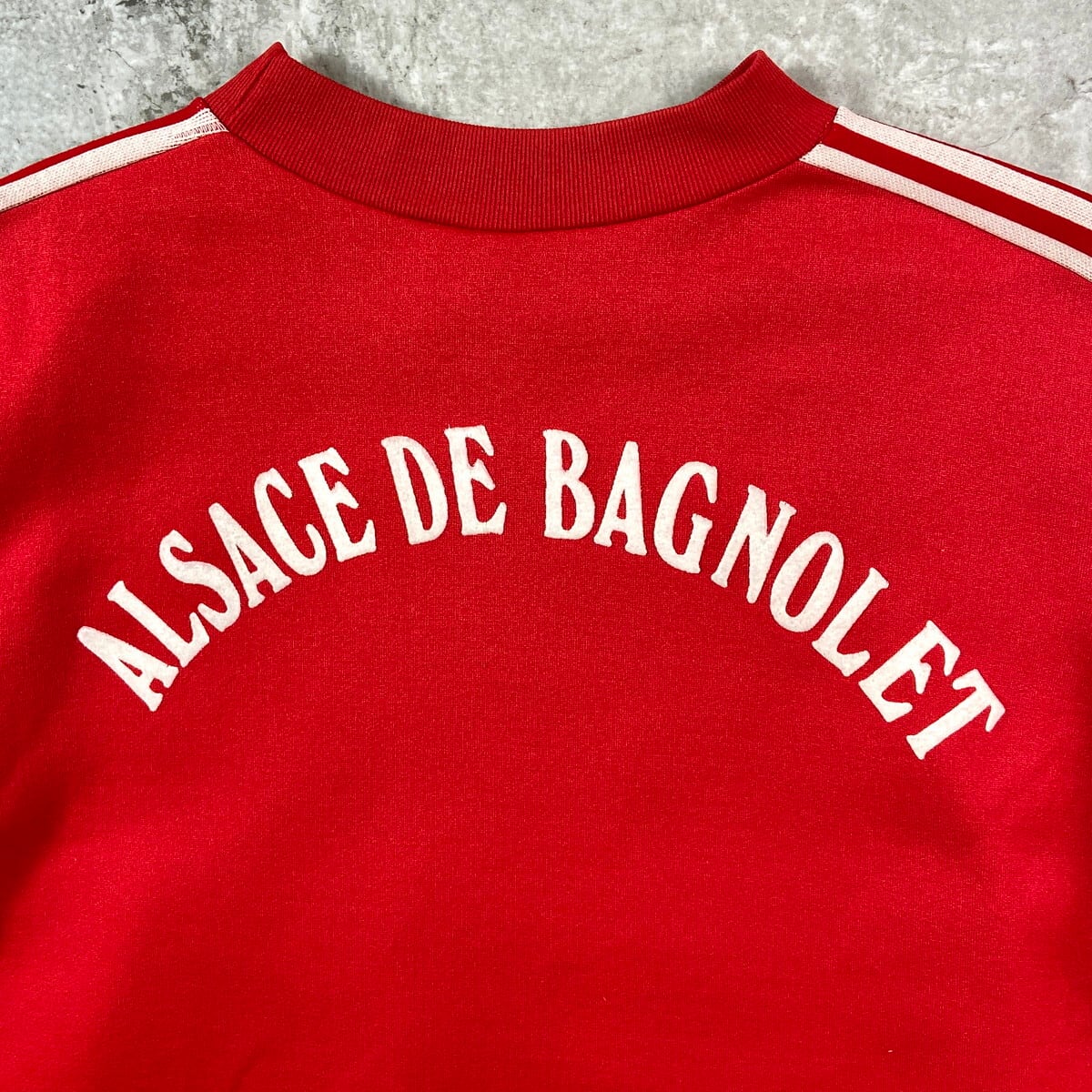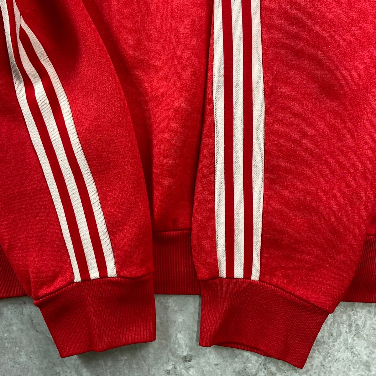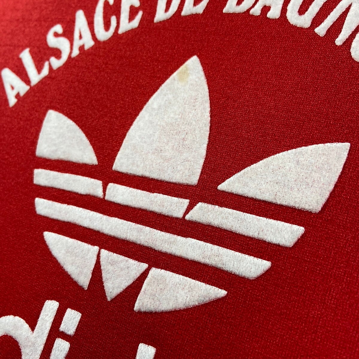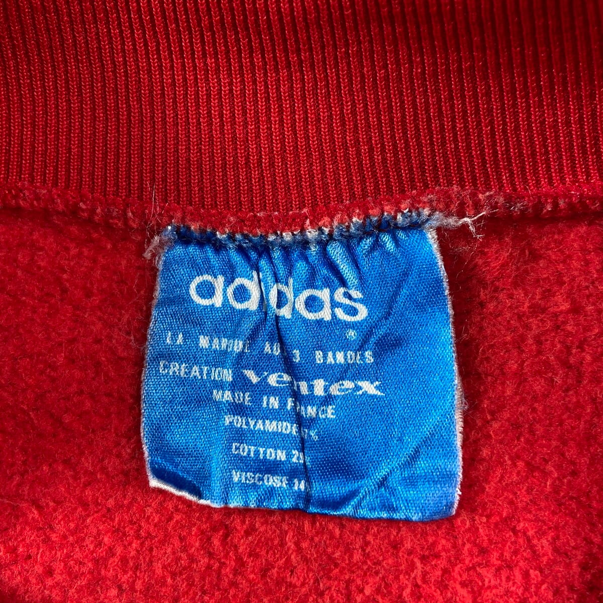 ■70年代 フランス製 VENTEX社製 adidas アディダス トレフォイルロゴ スウェットシャツ メンズM相当 古着 70s ヴィンテージ VINTAGE トレーナー フロッキープリント 赤【スウェット】/レッド