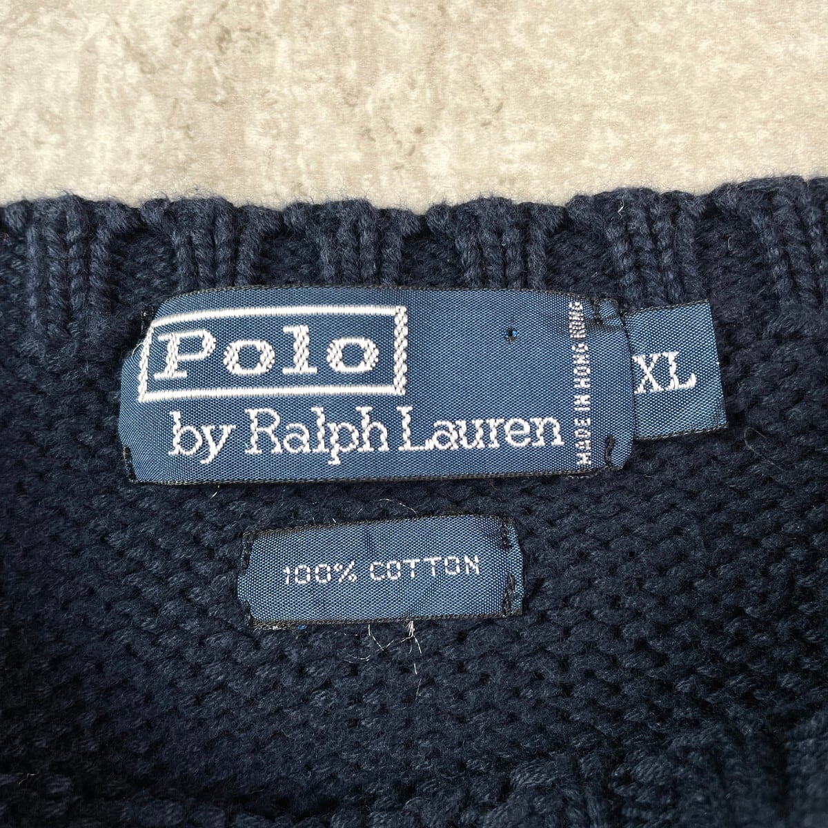 90年代 Polo by Ralph Lauren ポロバイラルフローレン 星条旗柄 コットンニットセーター メンズ2XL相当 古着 90s VINTAGE ヴィンテージ アメカジ オールドラルフローレン ビッグサイズ 大きいサイズ 紺色【ニットセーター】/ネイビー