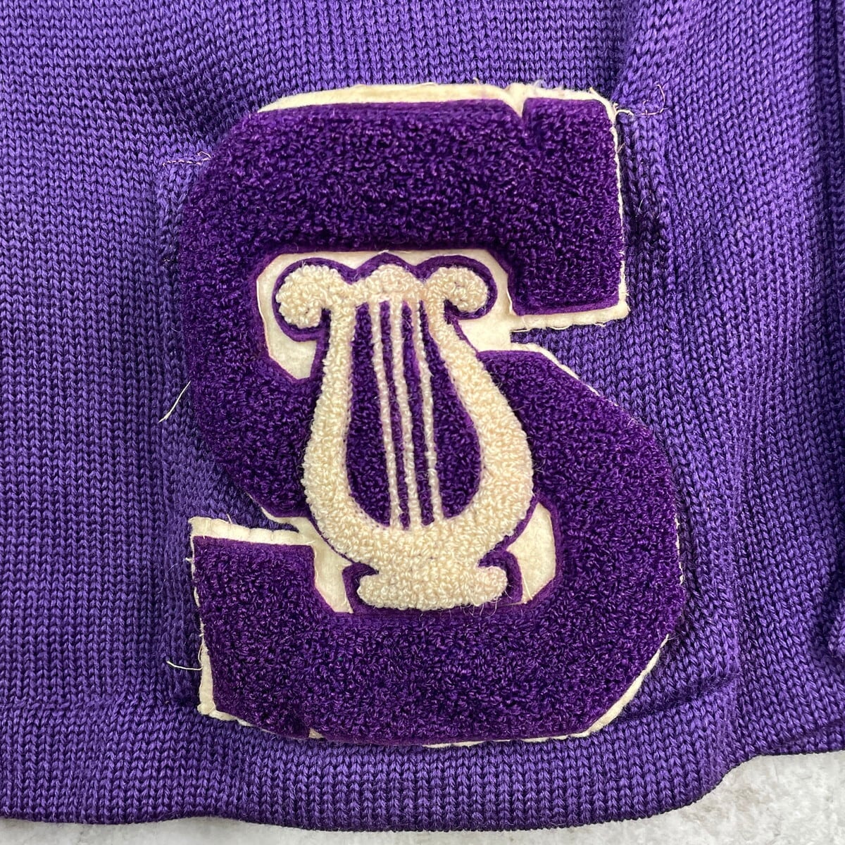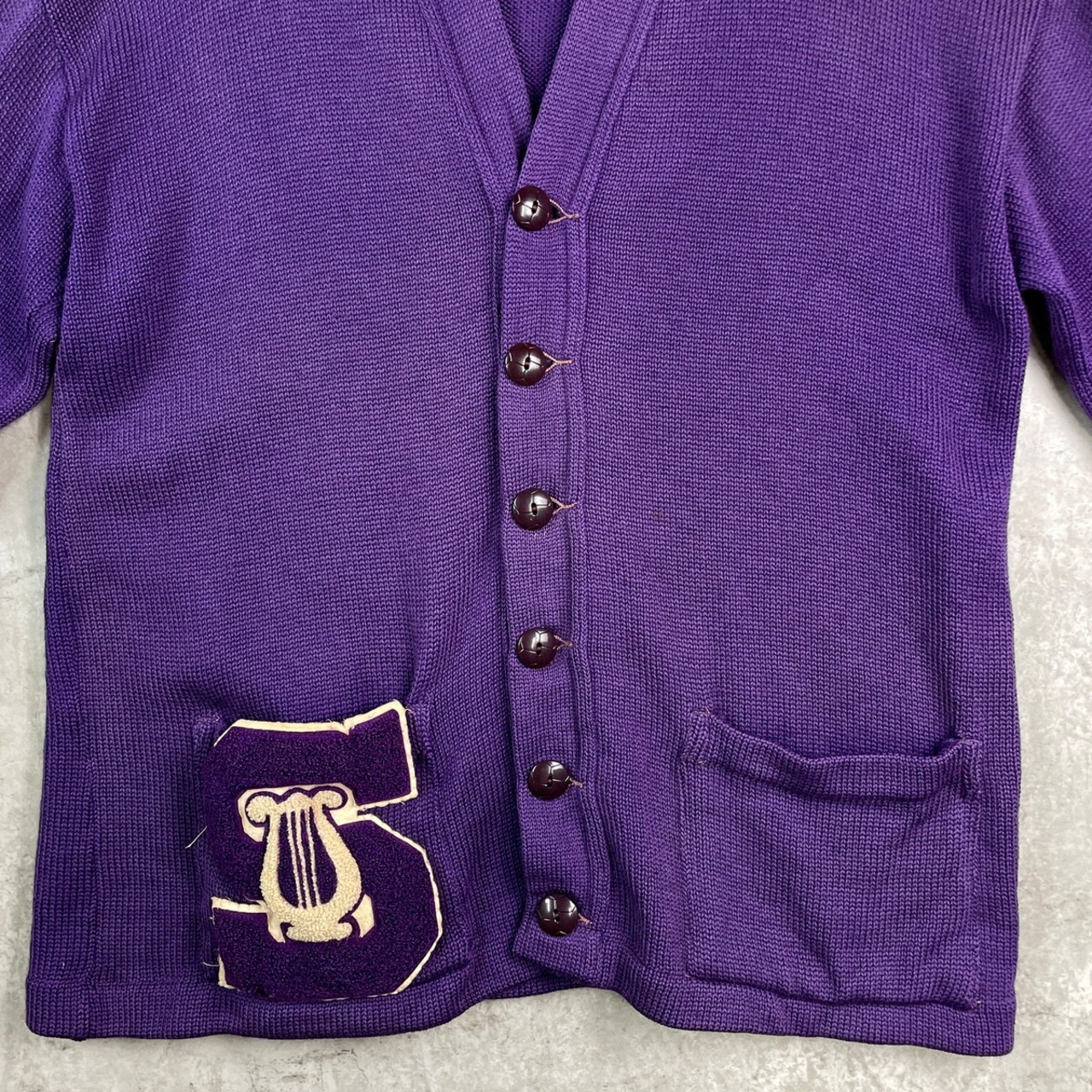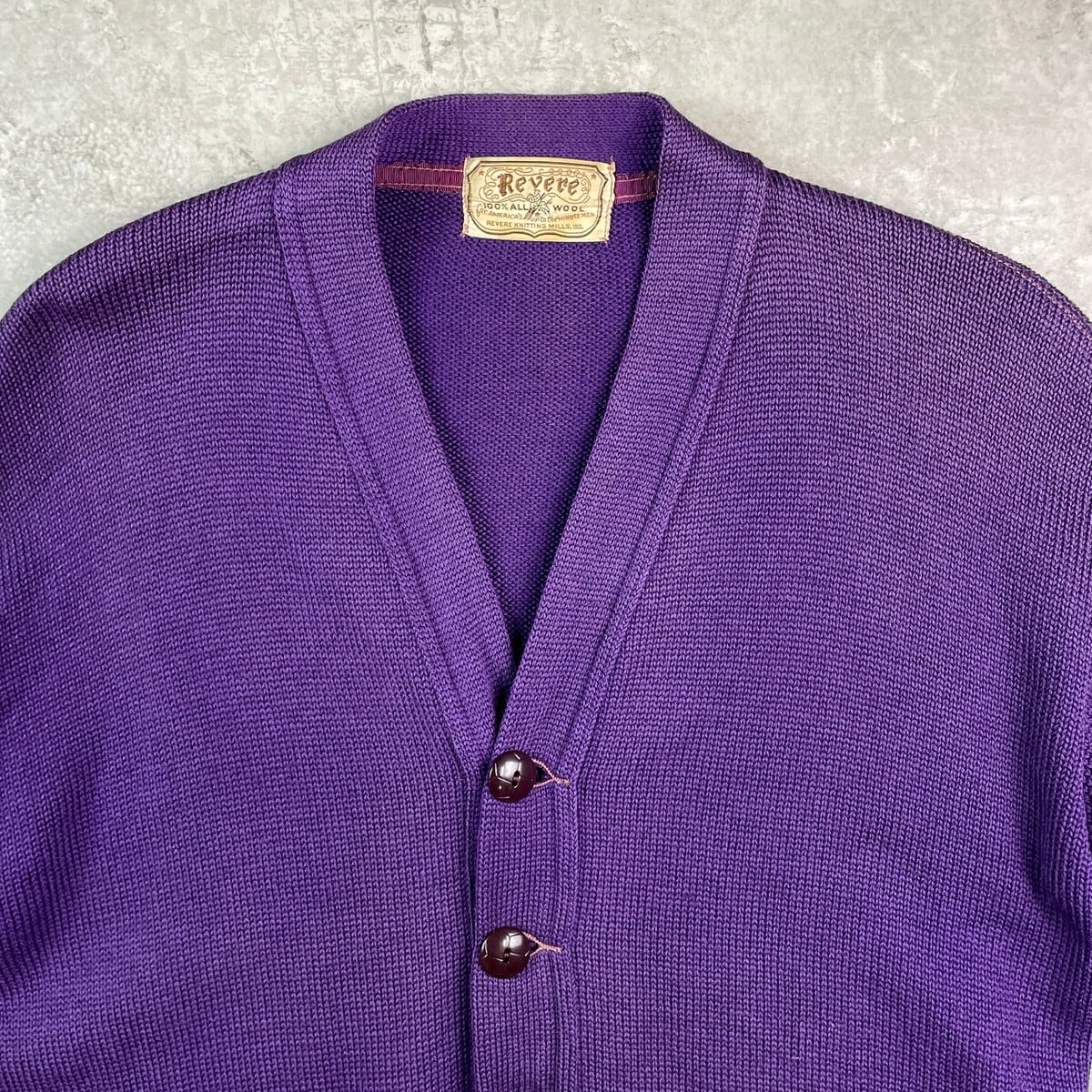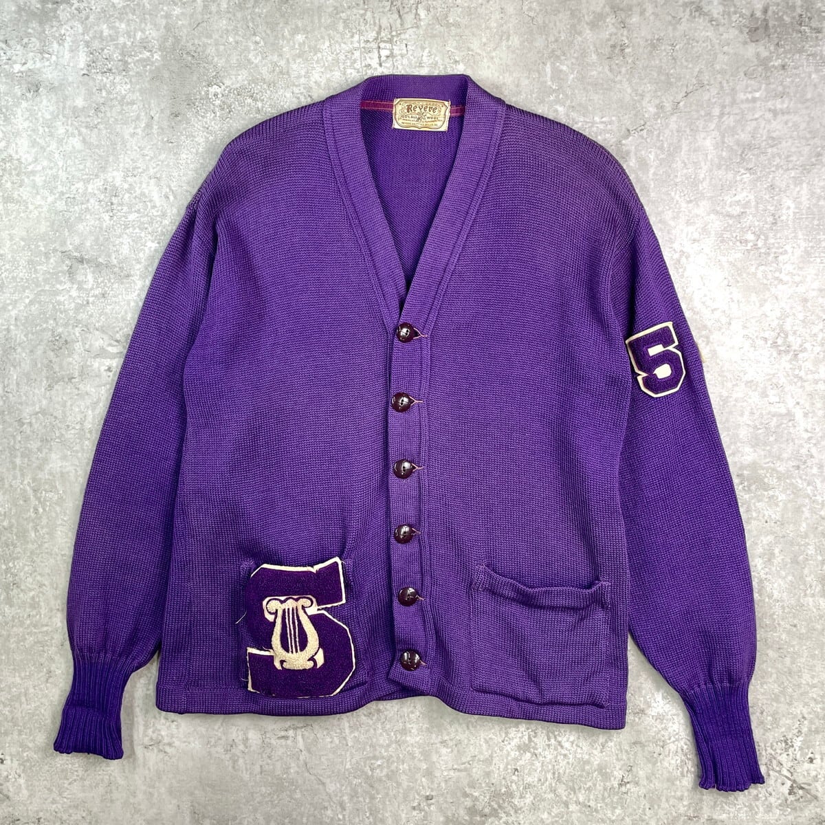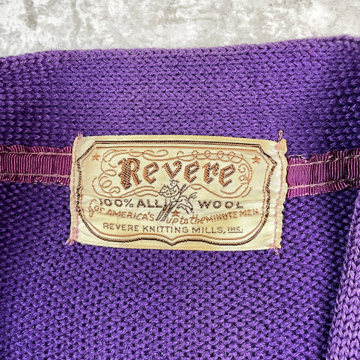 50年代 Revere ウールレタードカーディガン メンズL相当 古着 50s VINTAGE ヴィンテージ ワッペン 紫【ニットセーター】/パープル